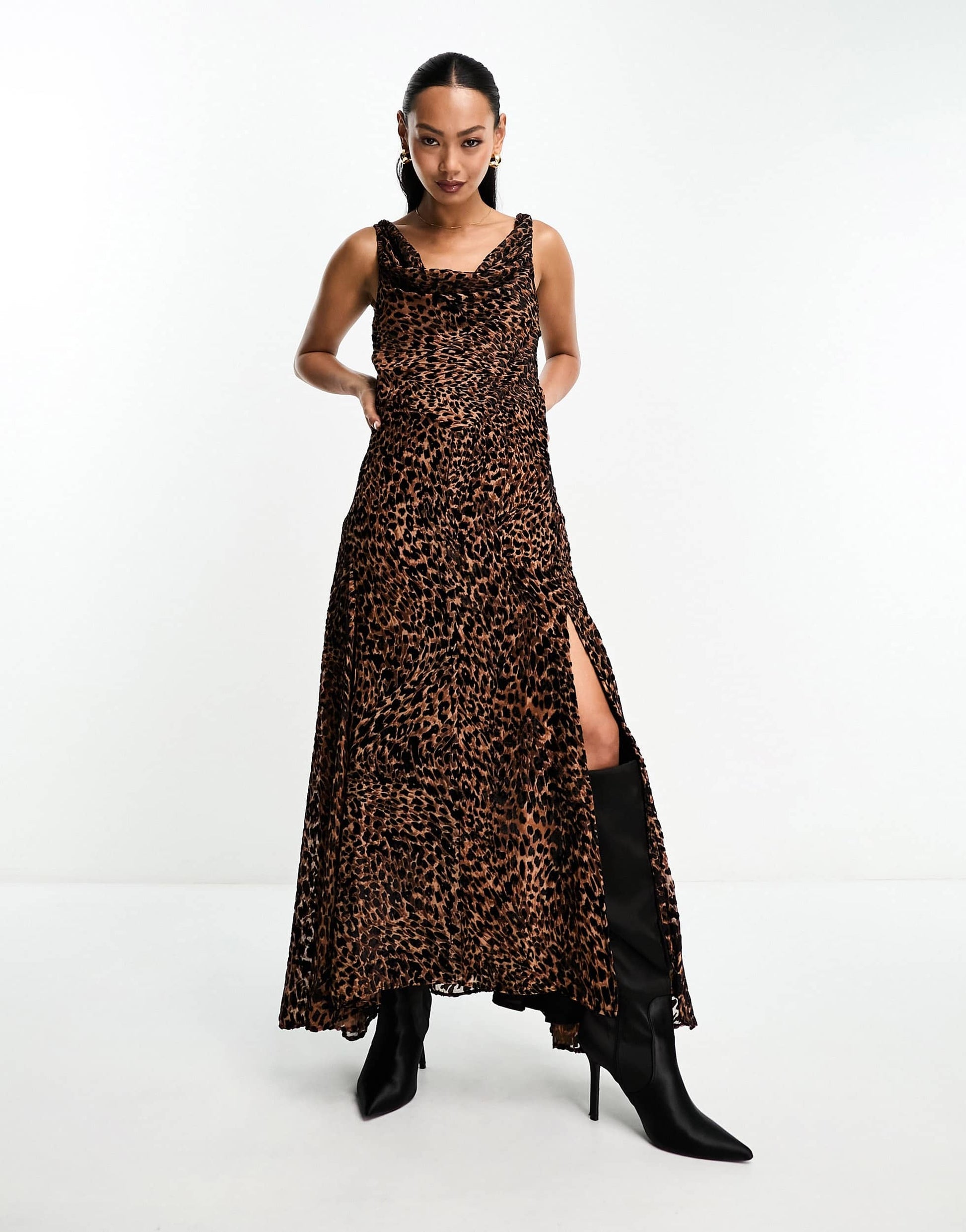 ASOS DESIGN devore midi slip dress in animal print
