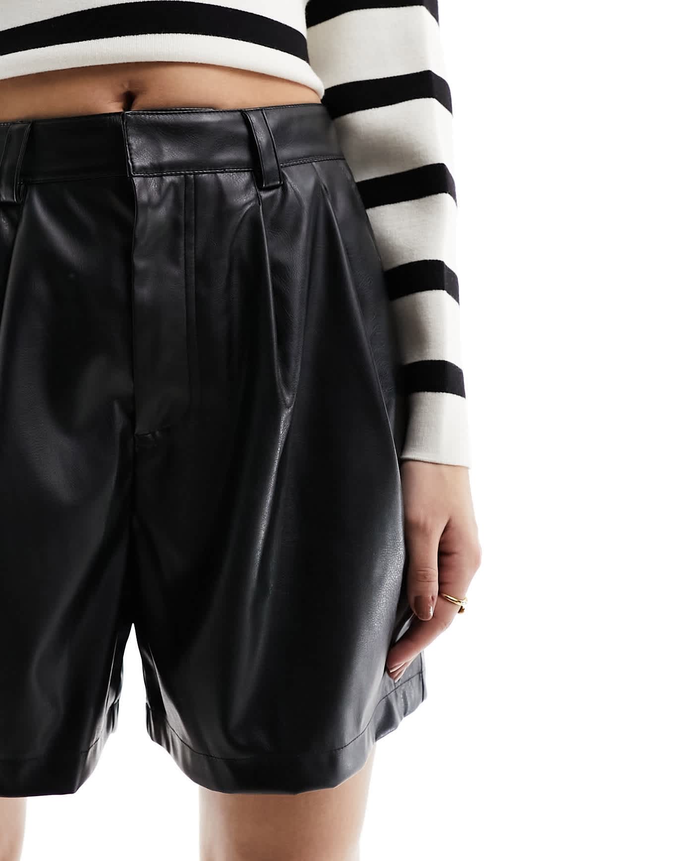 ASOS DESIGN faux leather dad short in black
