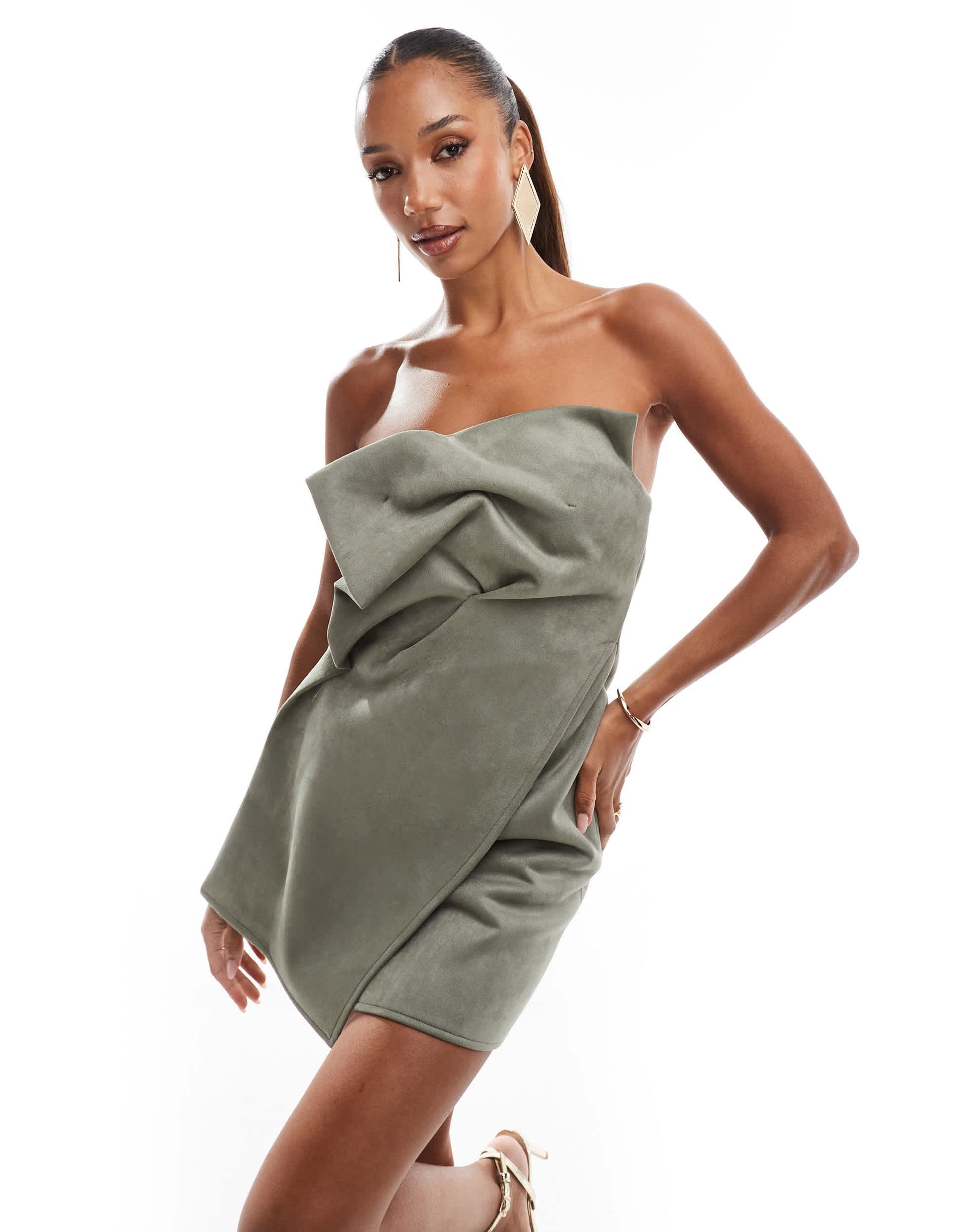 ASOS DESIGN faux suede manipulated tuck mini dress in green