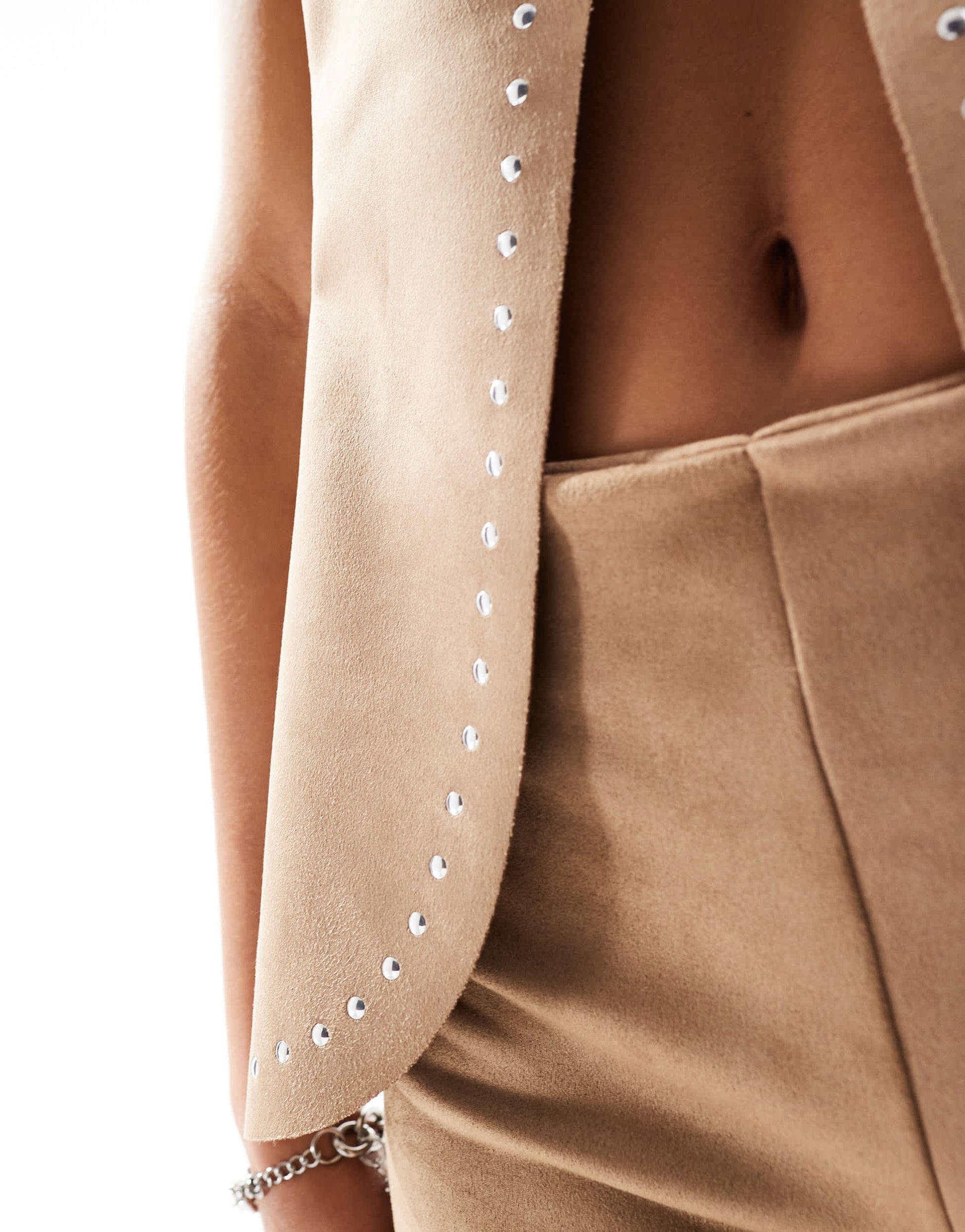 ASOS DESIGN faux suede waistcoat co-ord with studding in camel