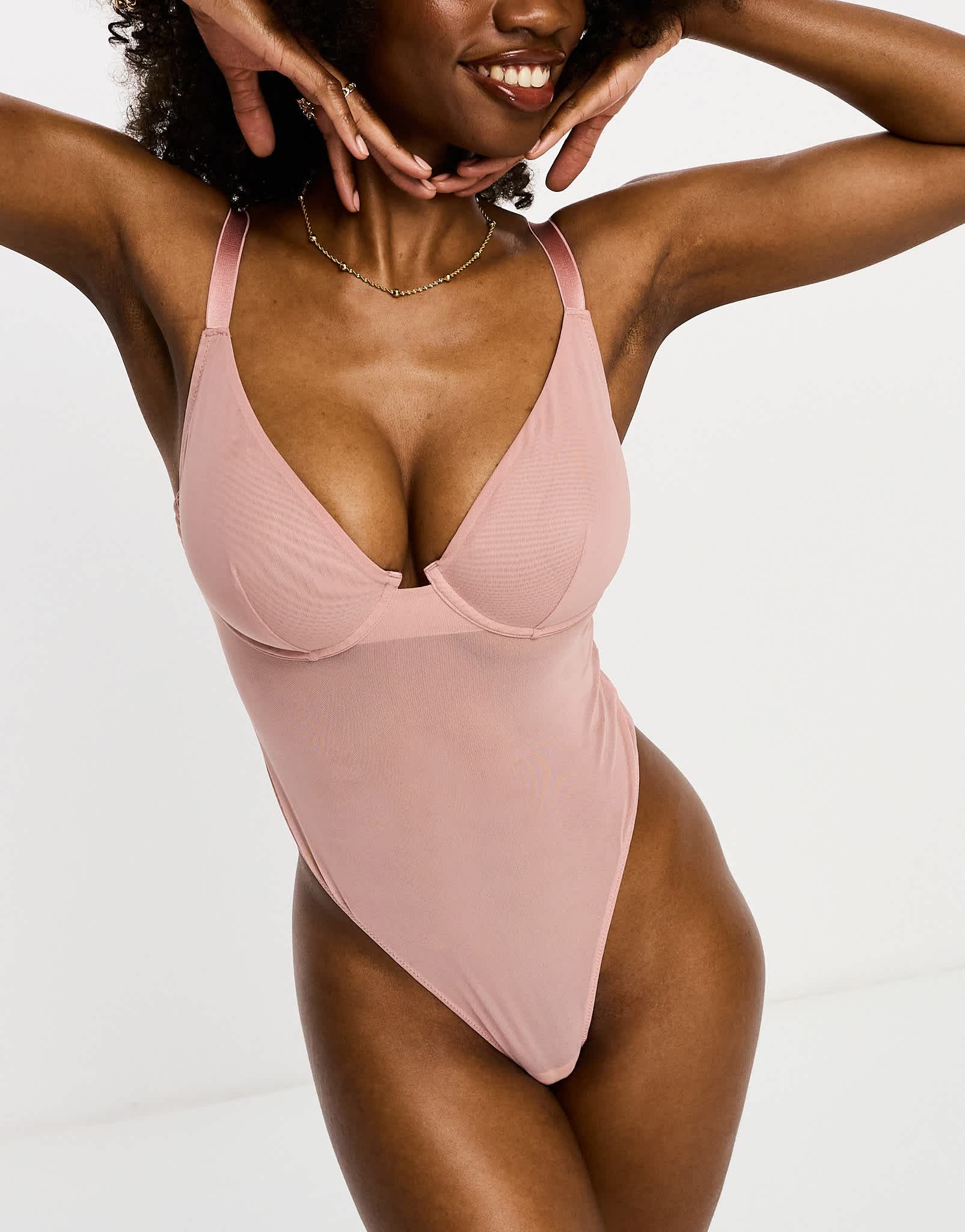 ASOS DESIGN Fuller Bust Mila mesh smoothing underwired body in mink