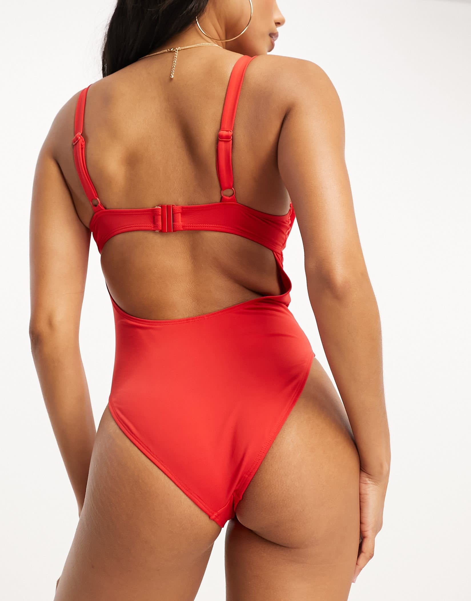ASOS DESIGN Fuller Bust underwired mesh cupped swimsuit in red