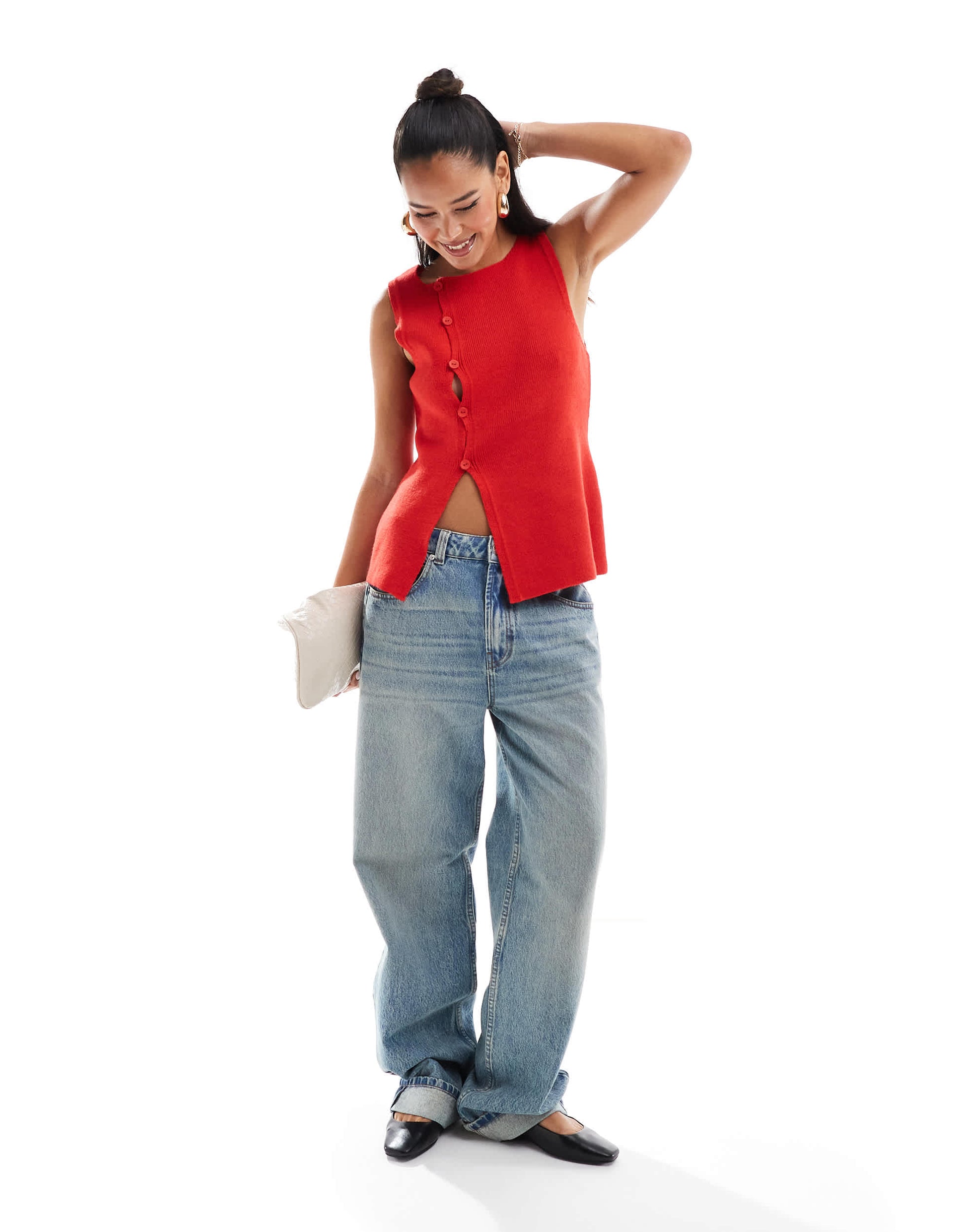 ASOS DESIGN knitted asymmetric waistcoat in red