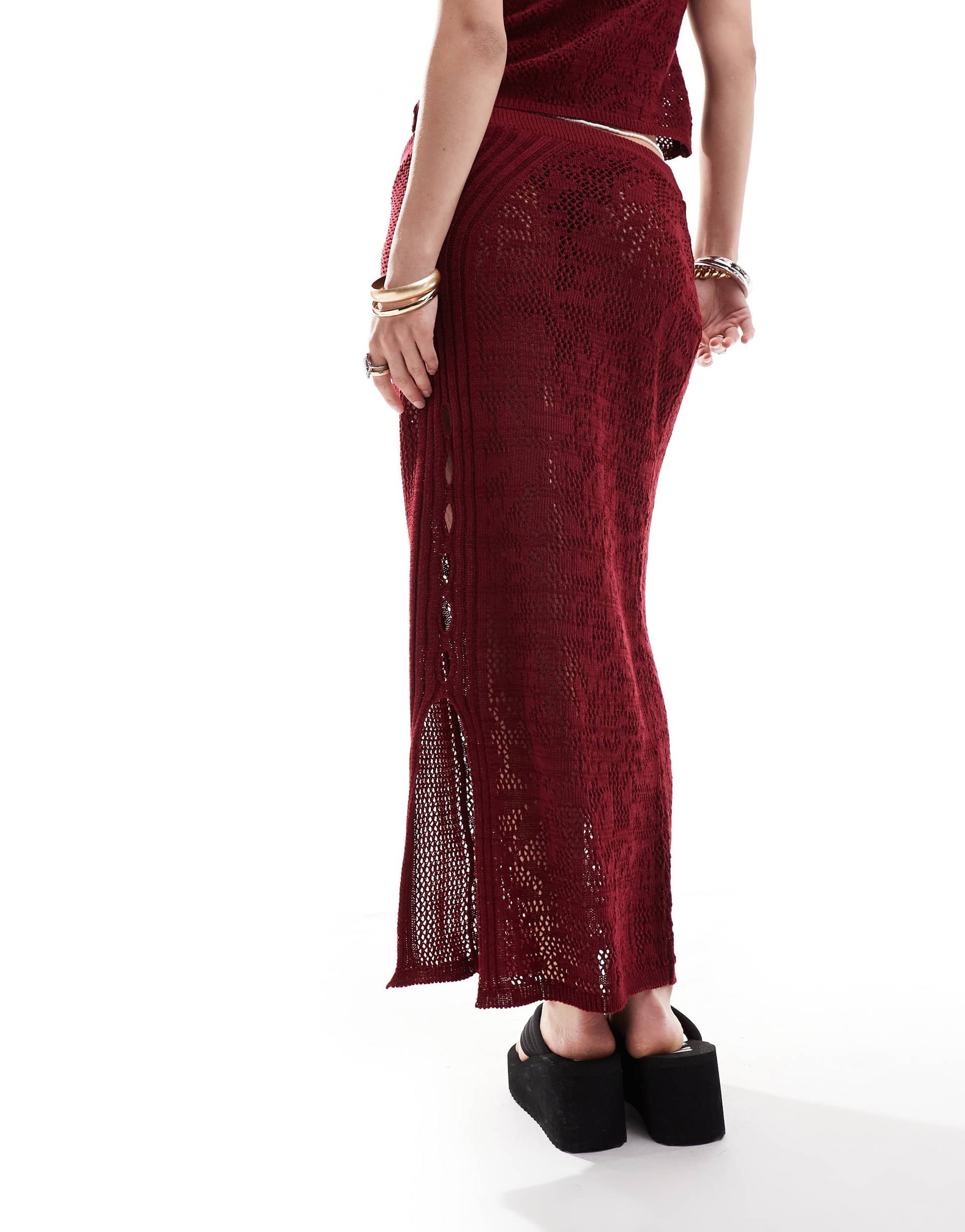 ASOS DESIGN knitted midaxi skirt with jacquard detail co-ord in burgundy