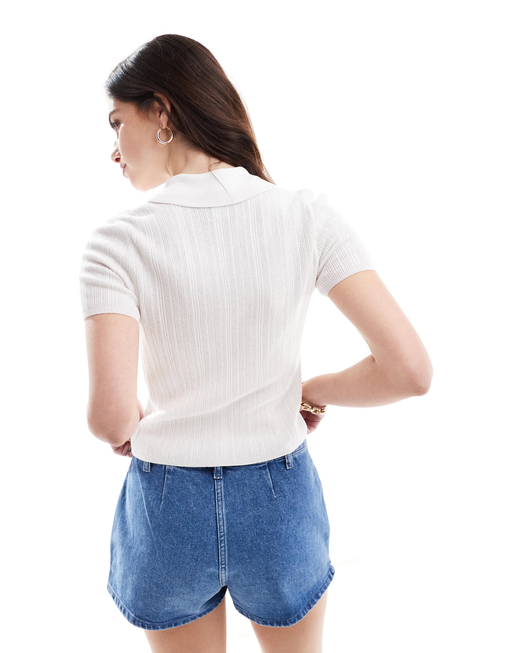 ASOS DESIGN knitted tie front cardigan with collar detail in white
