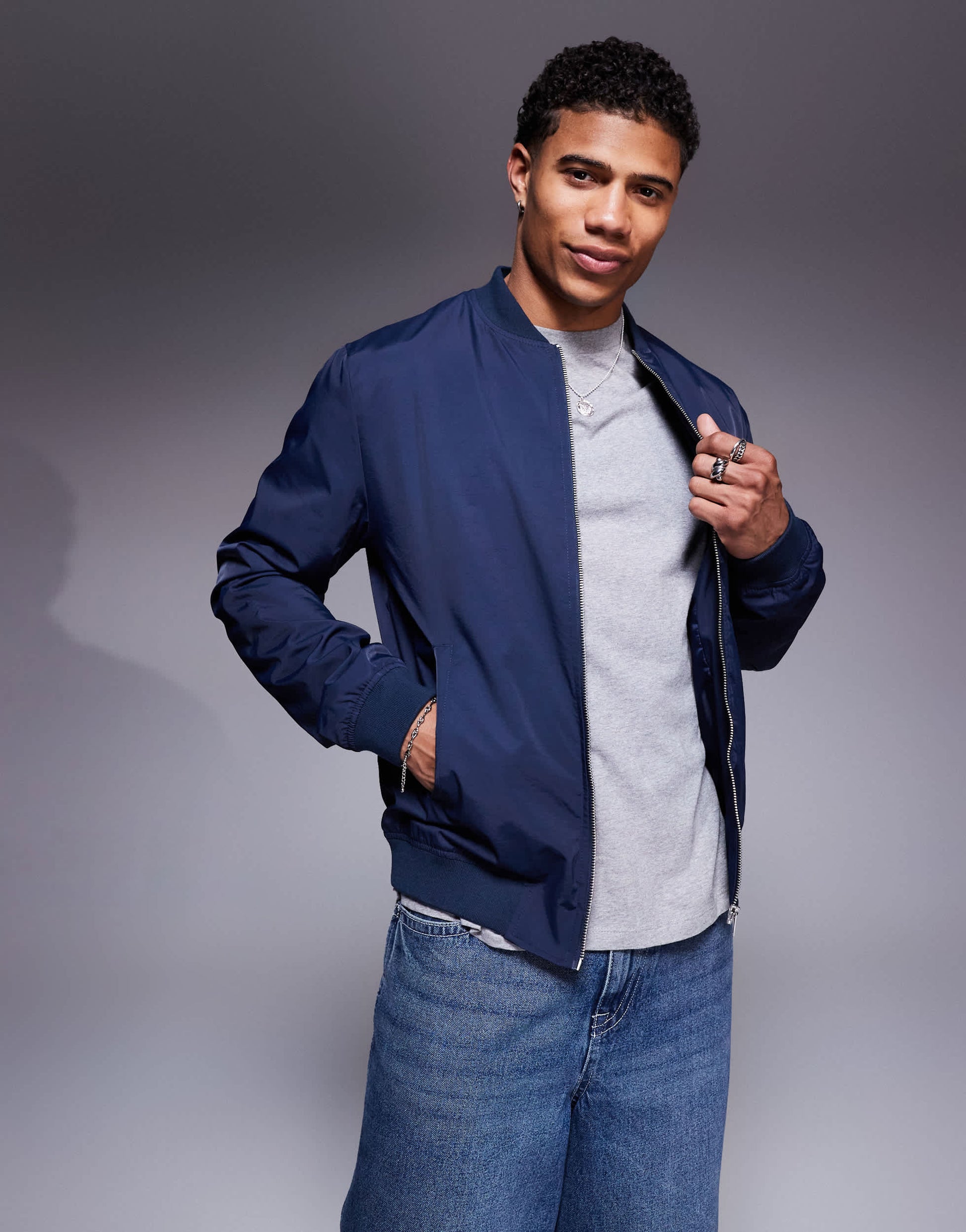 ASOS DESIGN lightweight bomber jacket in navy