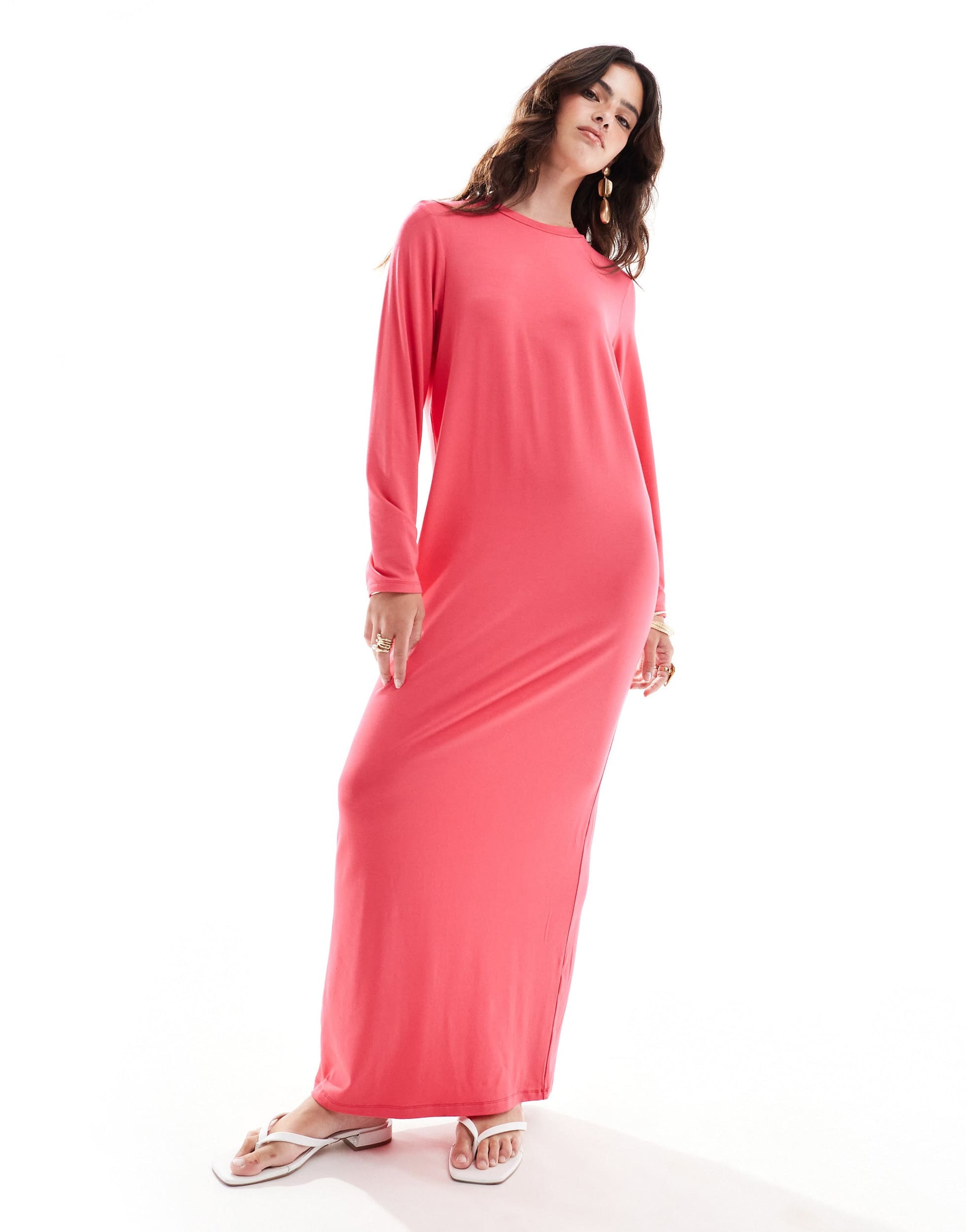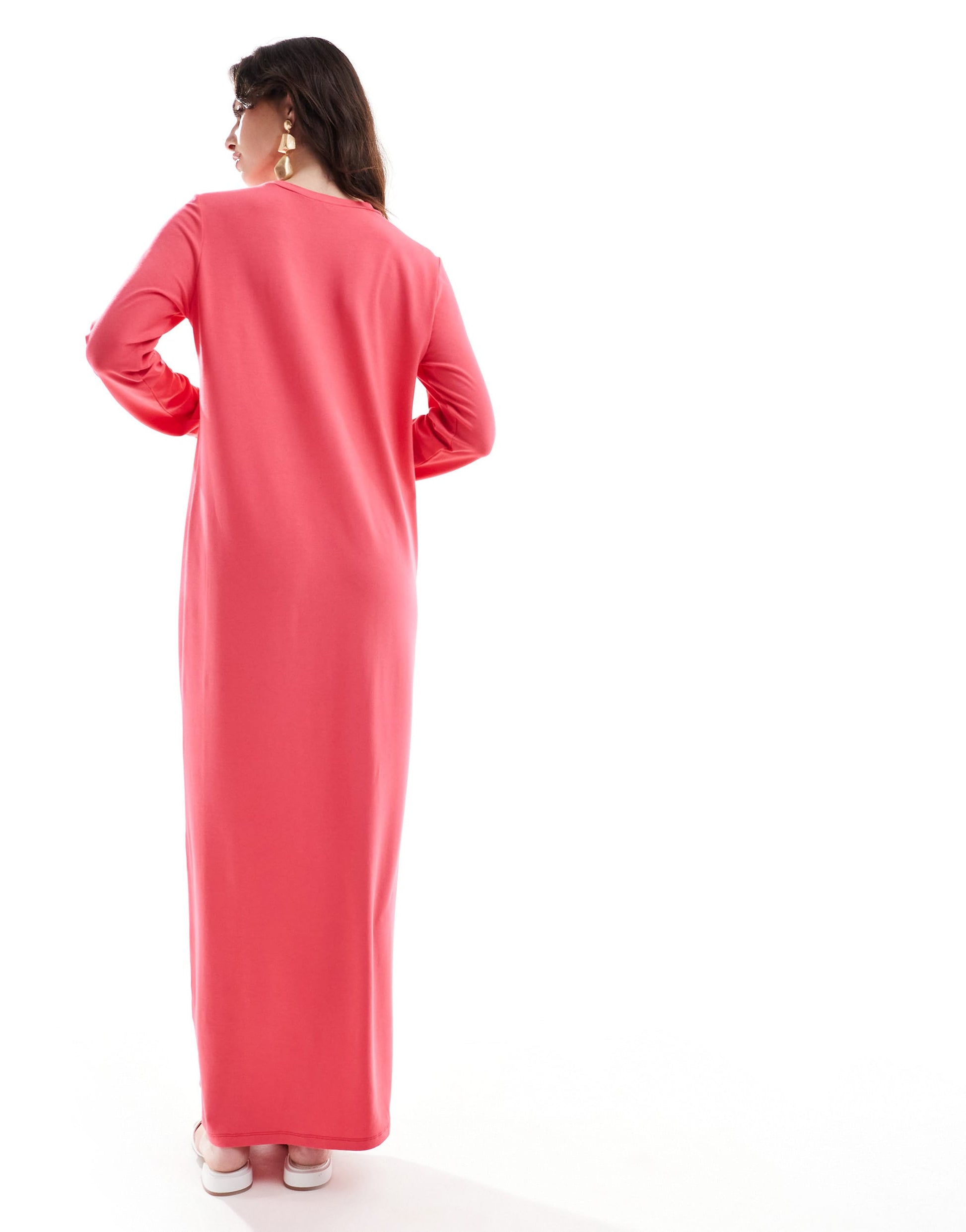 ASOS DESIGN long sleeve maxi t-shirt dress in pink