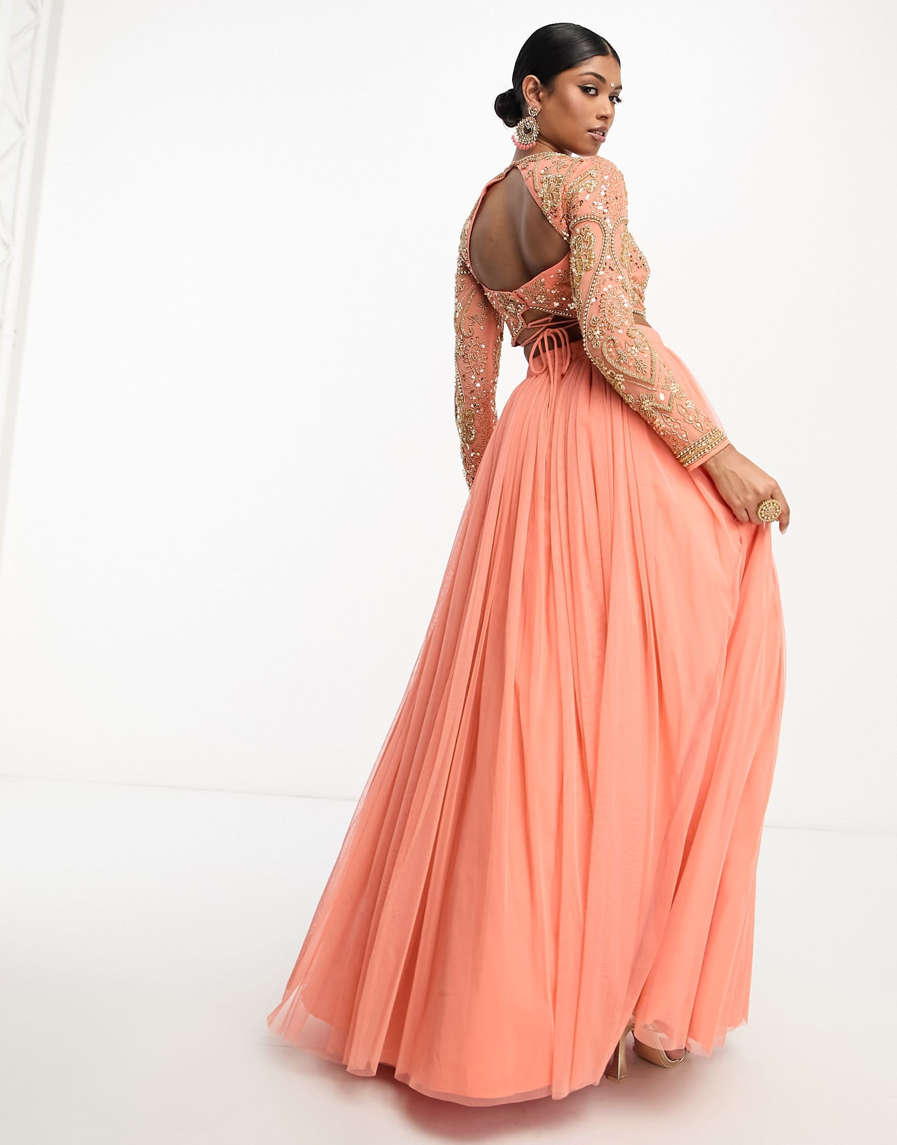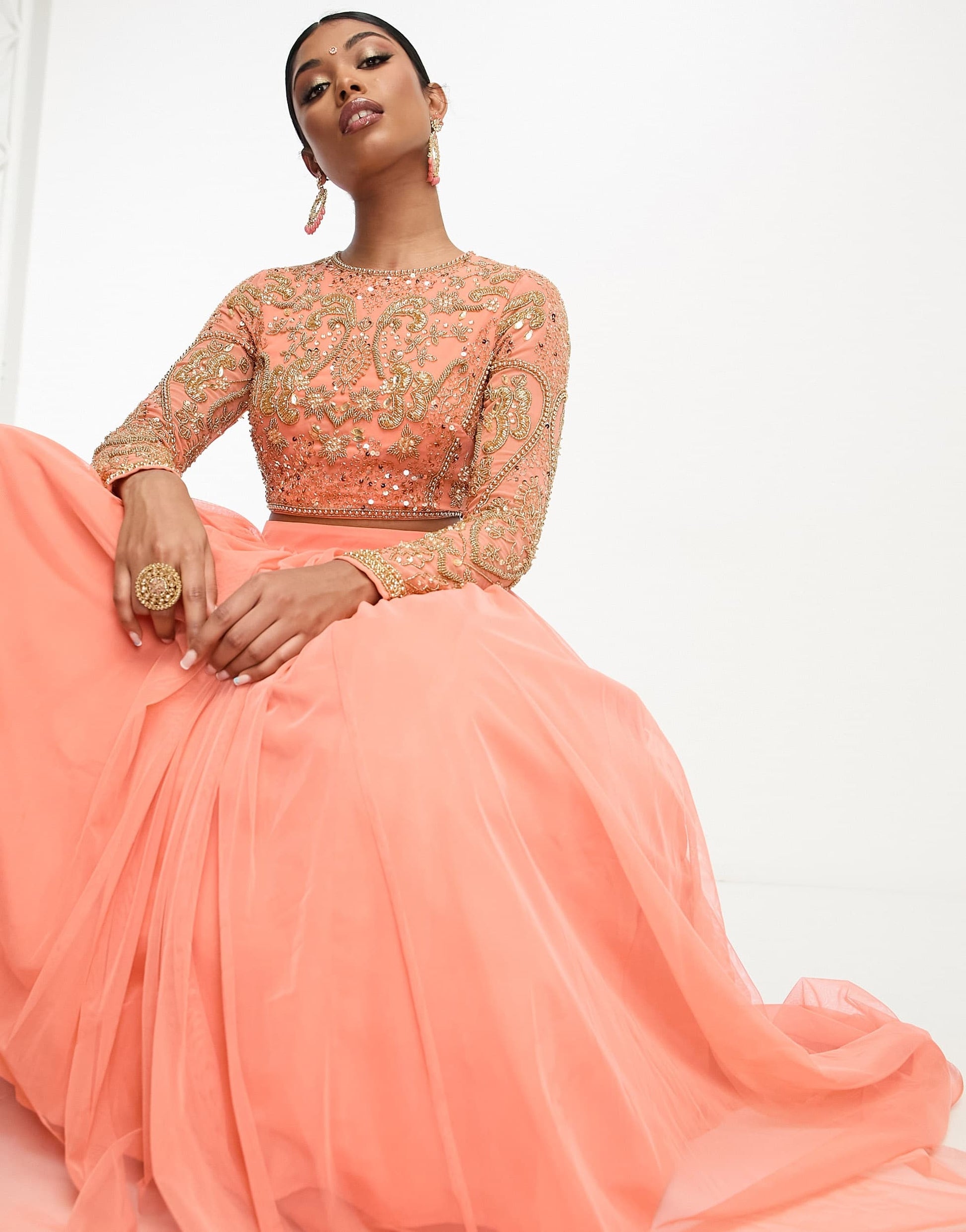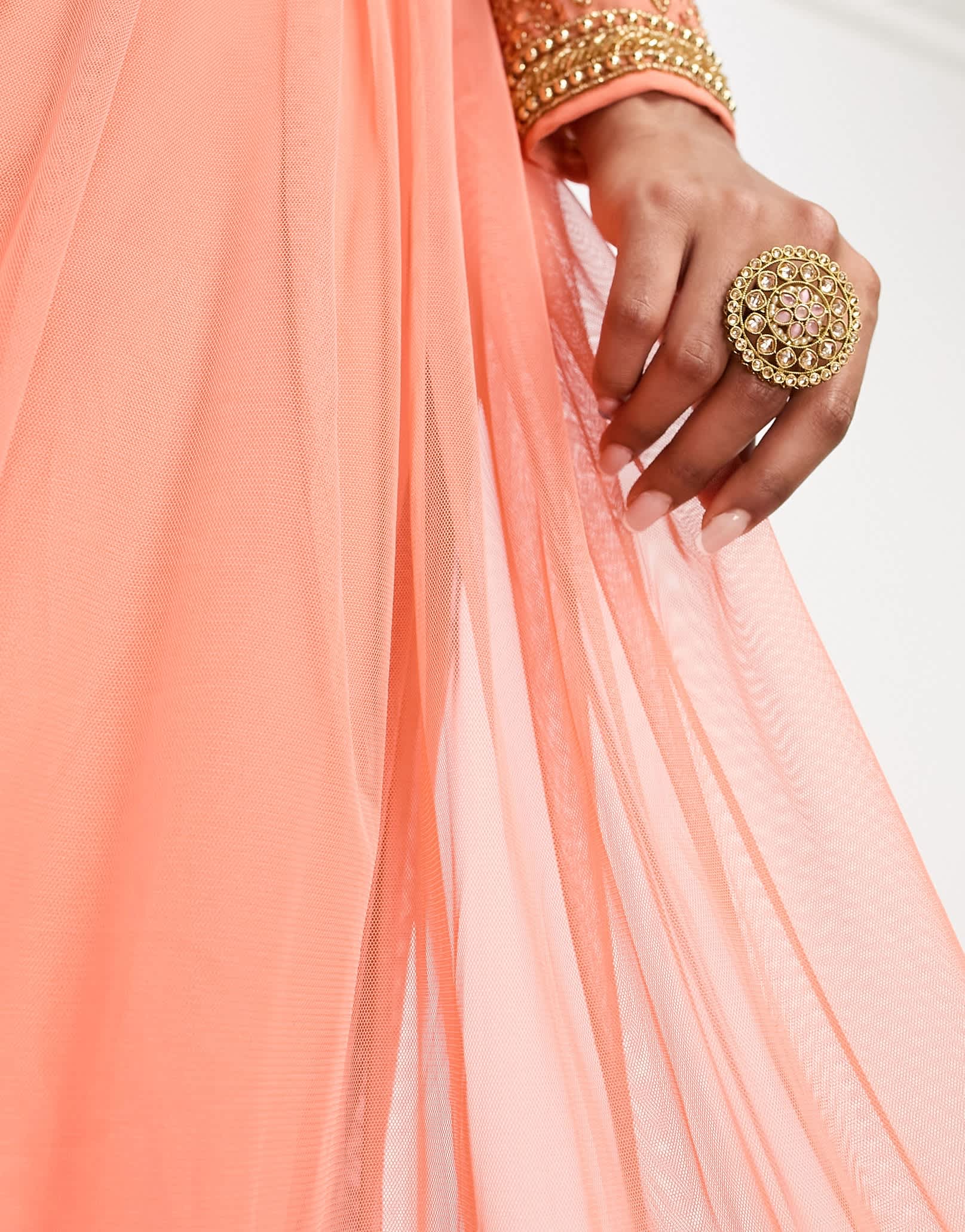 ASOS DESIGN mesh maxi lehenga skirt in marigold