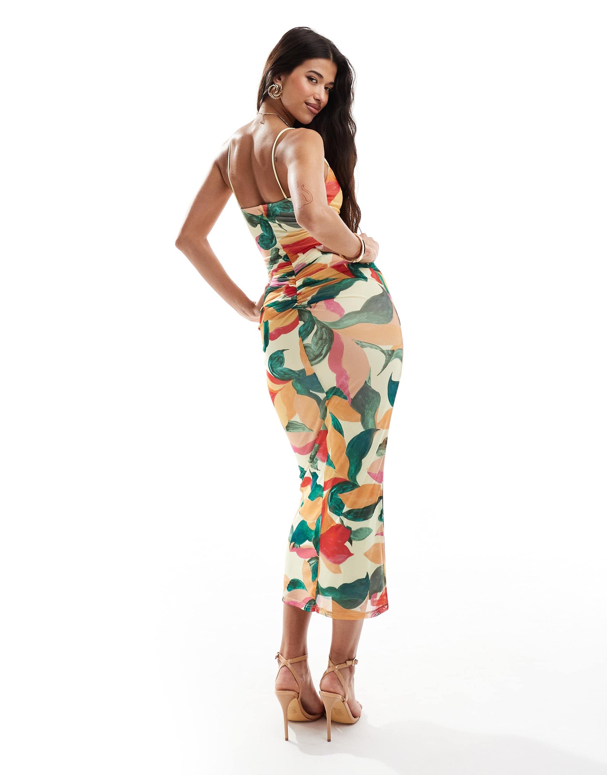 ASOS DESIGN mesh ring trim detail cami maxi dress in bold abstract print