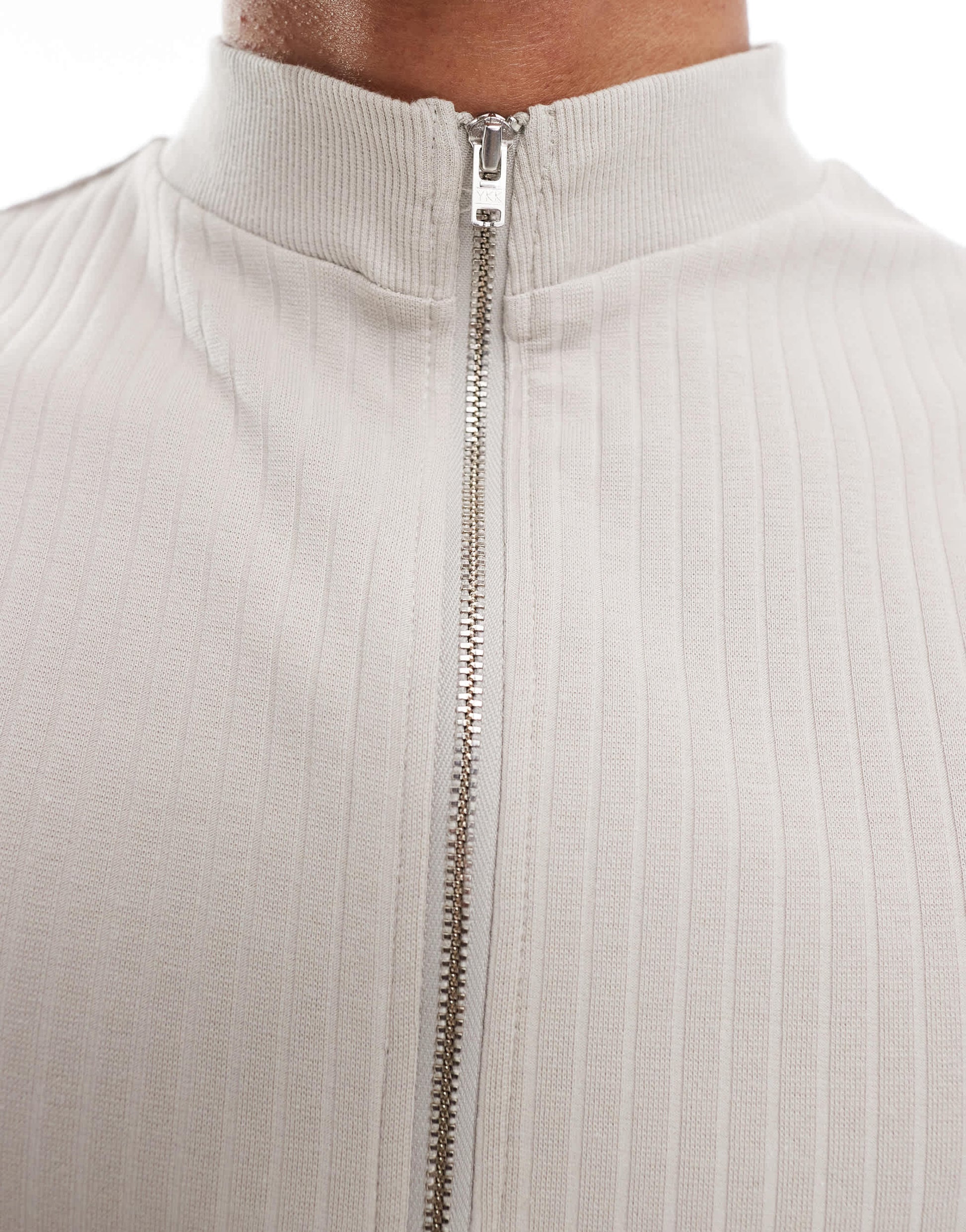 ASOS DESIGN muscle fit rib tank with double ended zip in stone