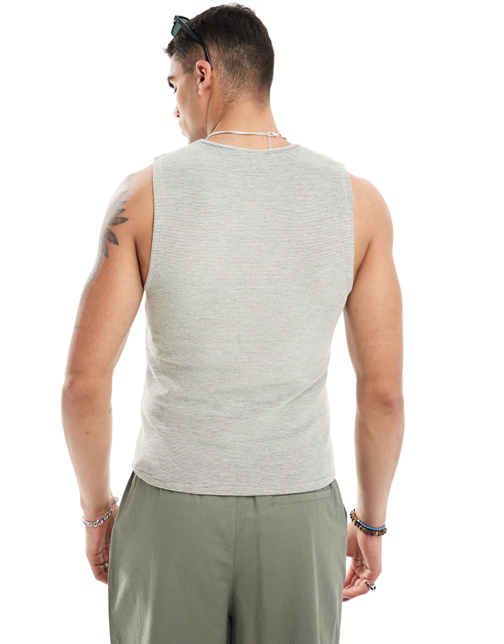 ASOS DESIGN muscle fit tank vest in beige fabric