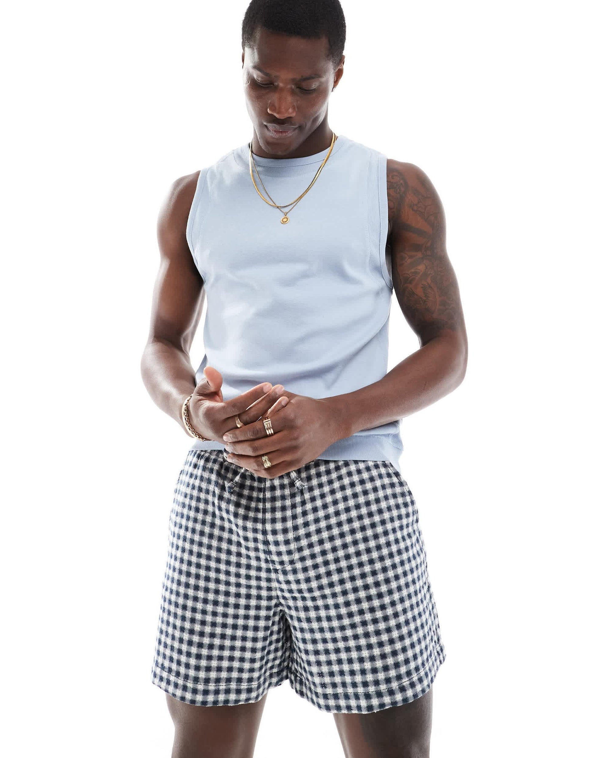 ASOS DESIGN muscle fit vest with panel detail in light blue