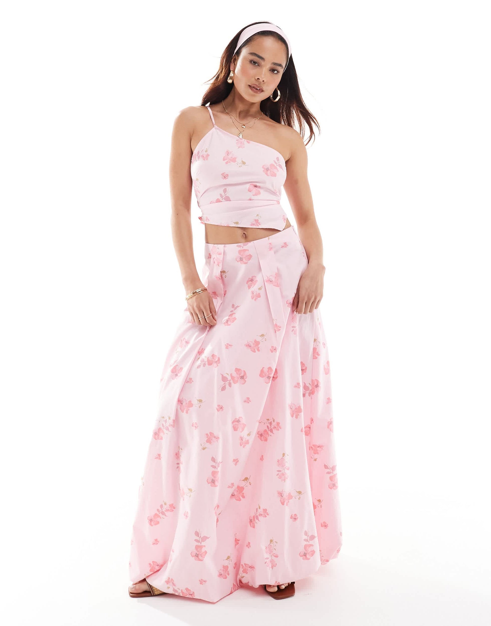 ASOS DESIGN one shoulder asymmetric co-ord top in pink floral print