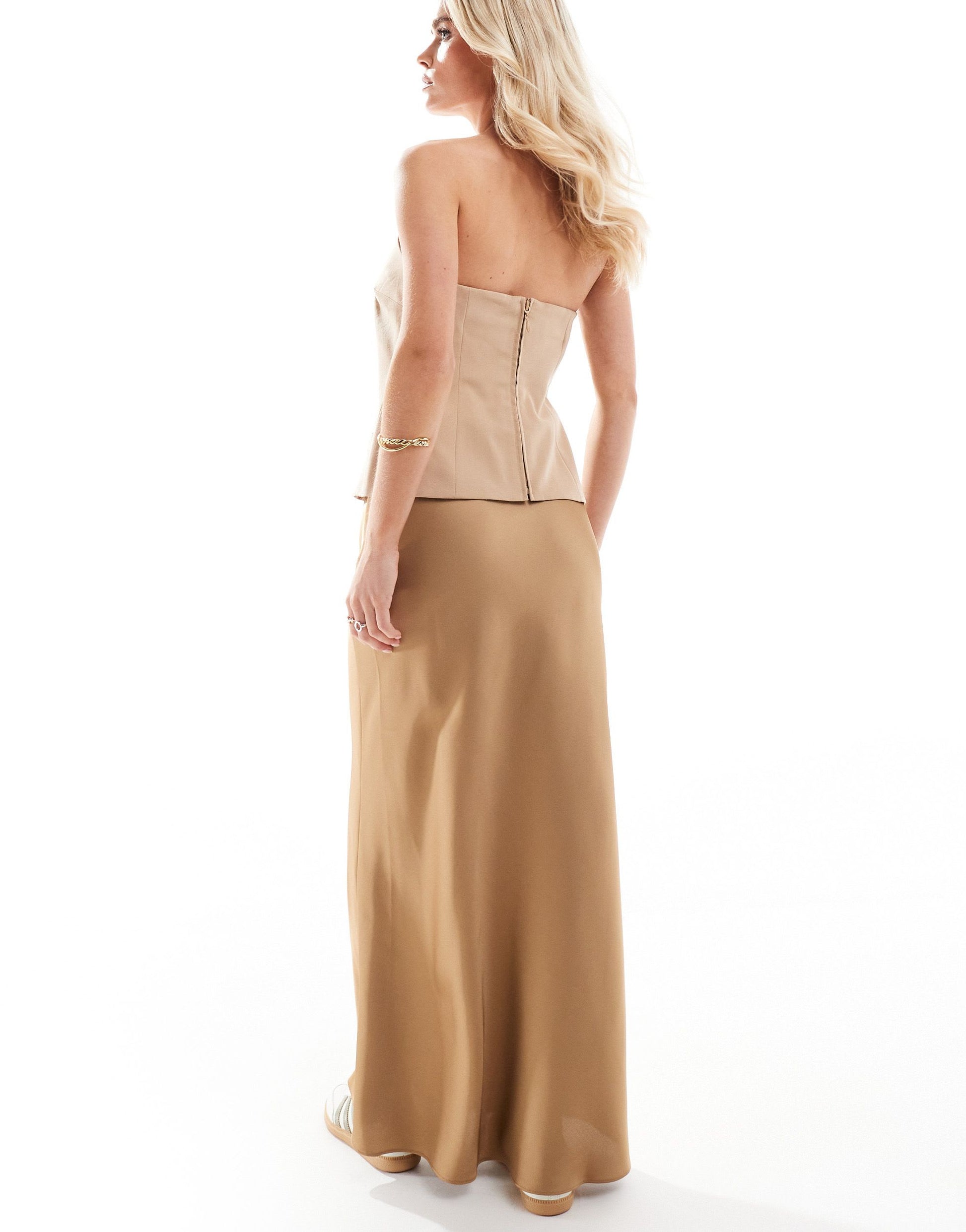 ASOS DESIGN Petite satin bias tie waist maxi skirt in taupe