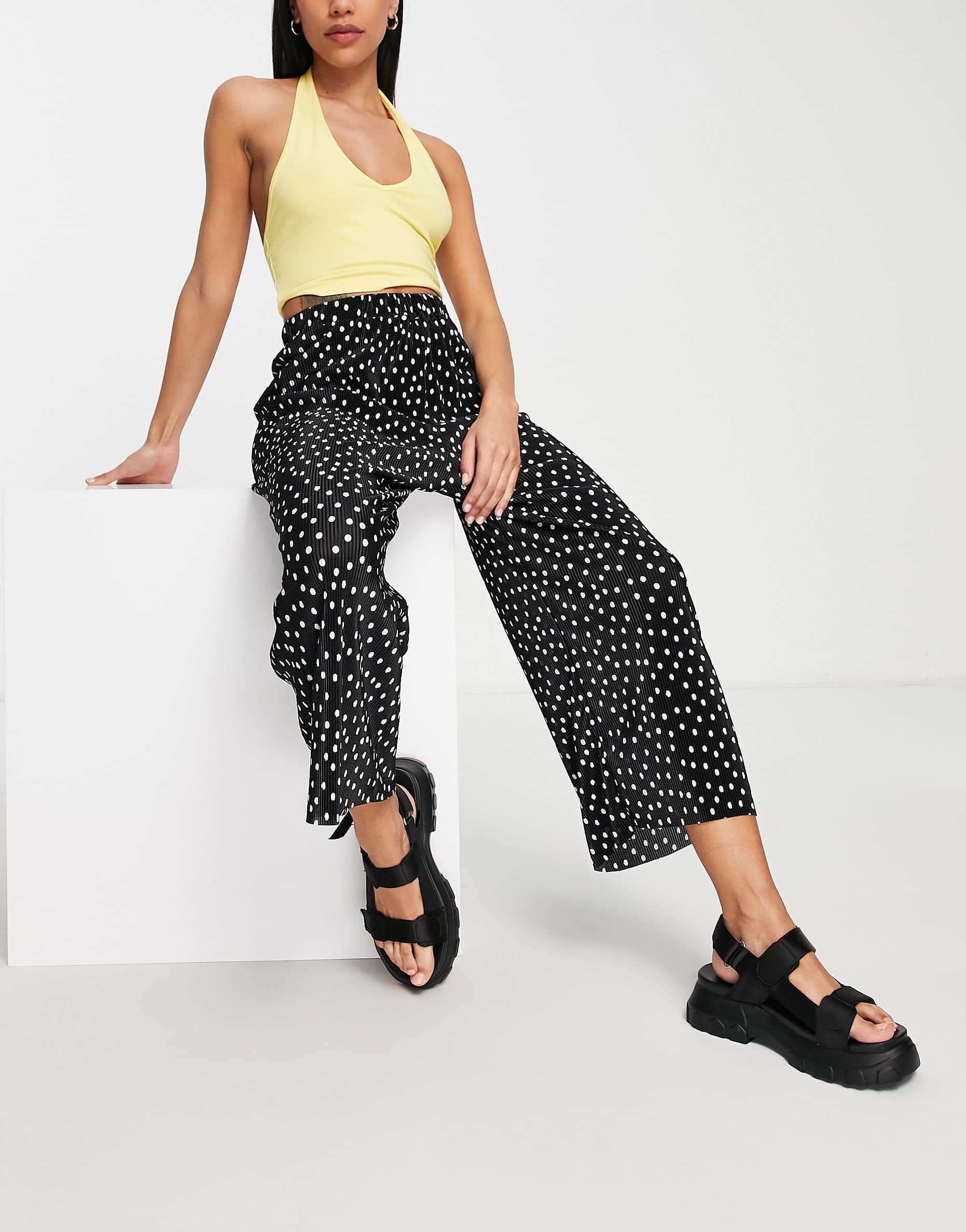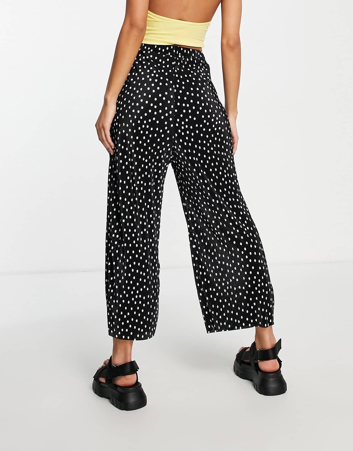 ASOS DESIGN plisse wide leg trouser culottes in mono spot