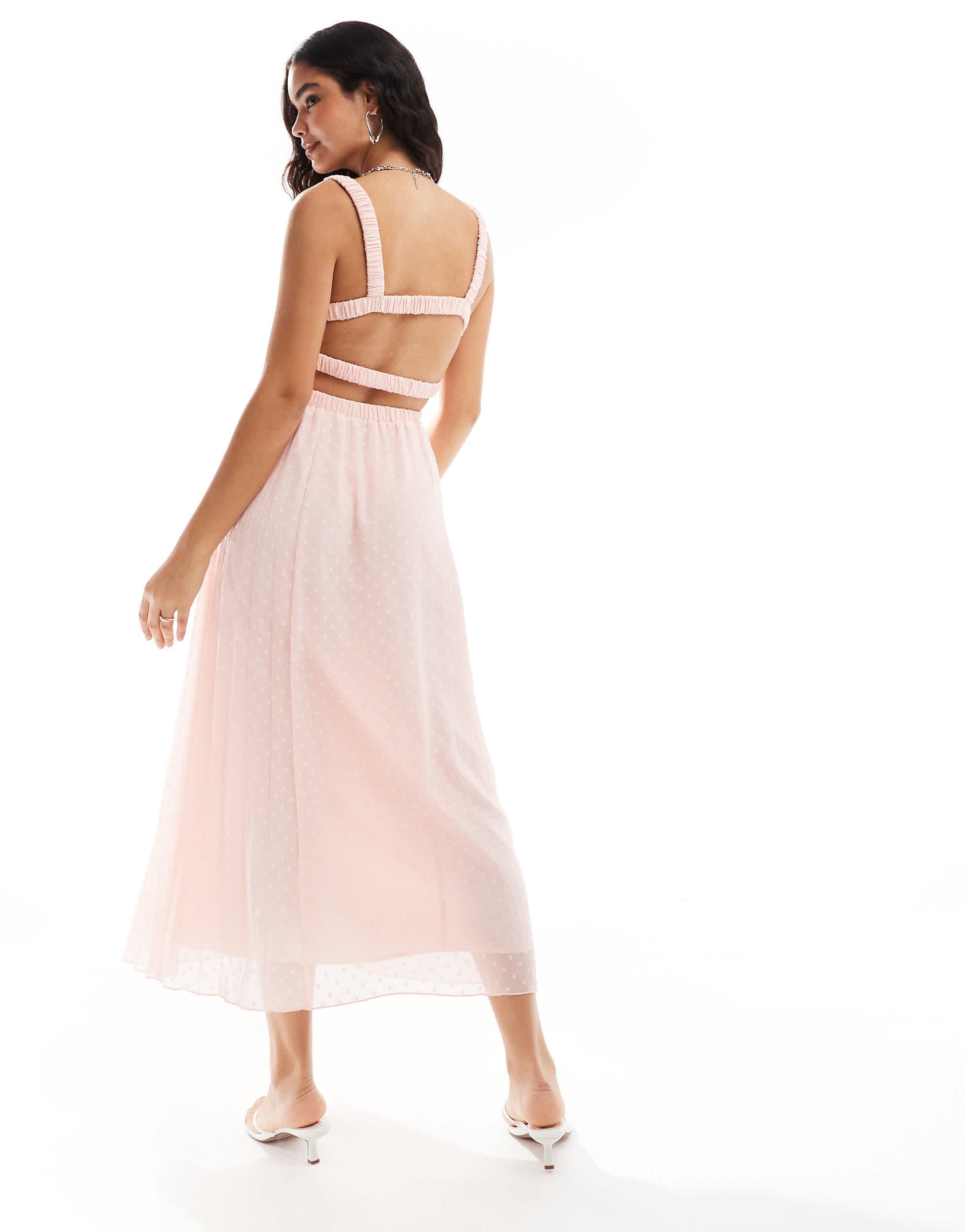 ASOS DESIGN plunge front pleated midi dress with waist belt in pastel pink