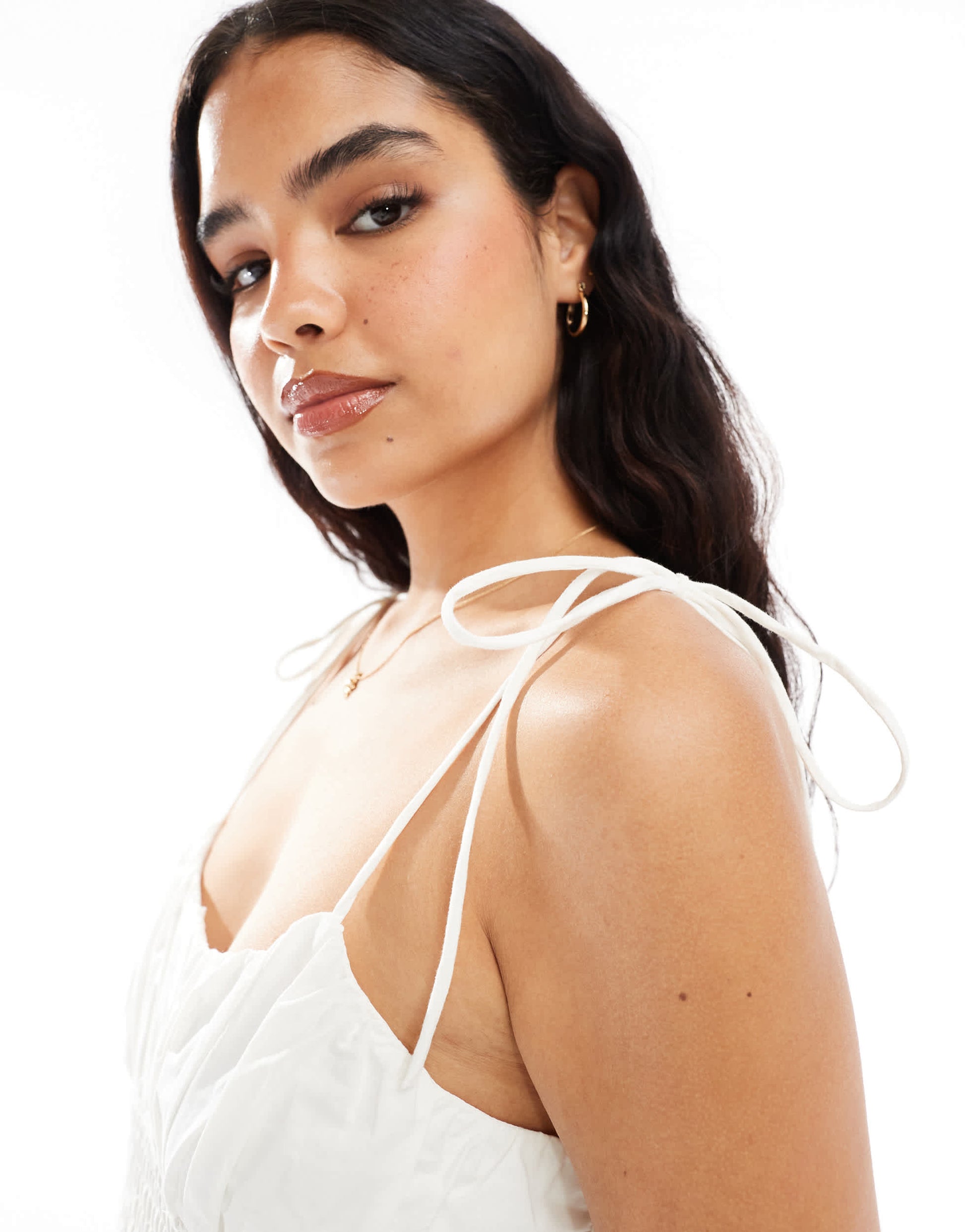 ASOS DESIGN poplin shirred tie strap mini dress in ivory