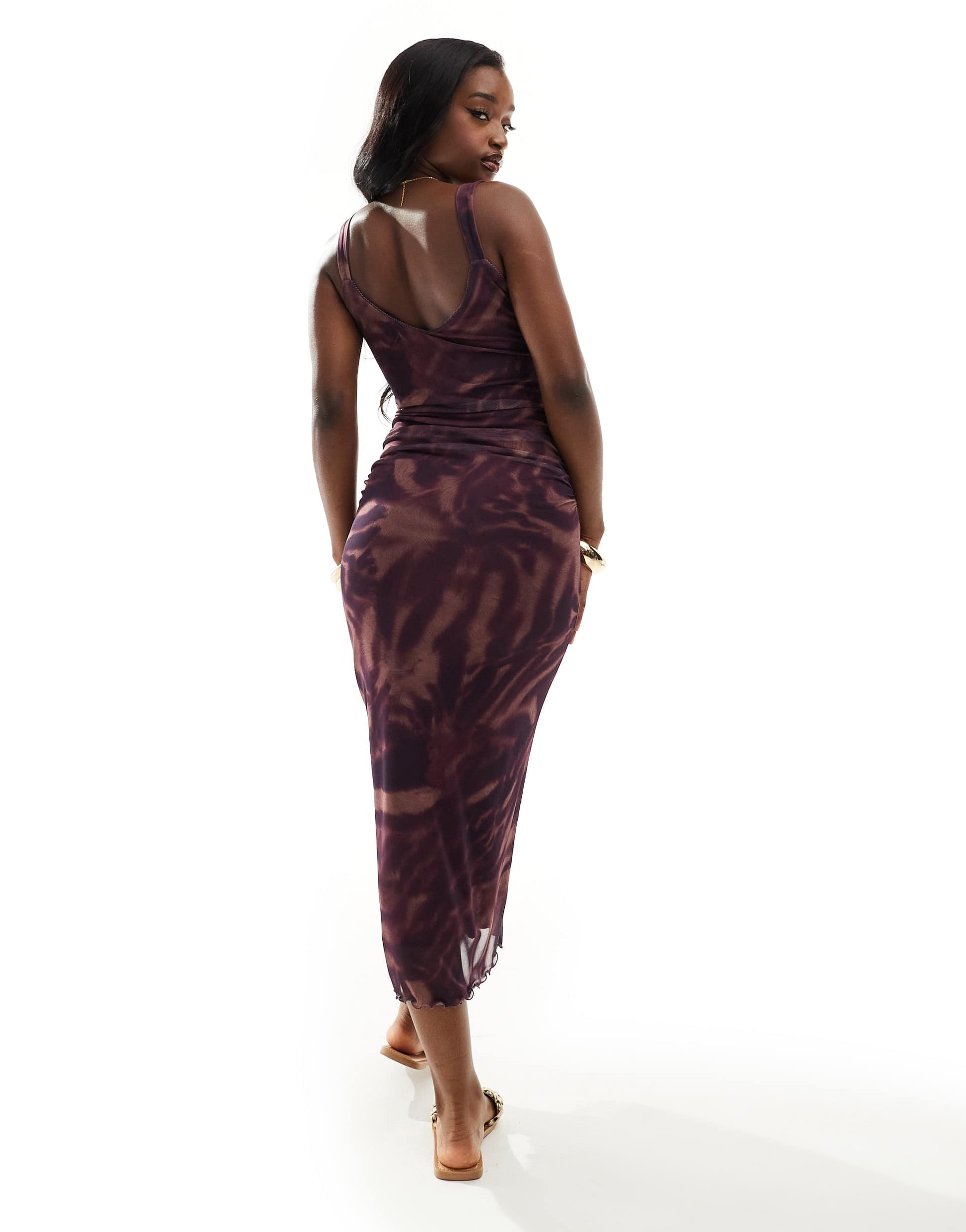 ASOS DESIGN powermesh strappy midi tea dress with bust seams in animal print