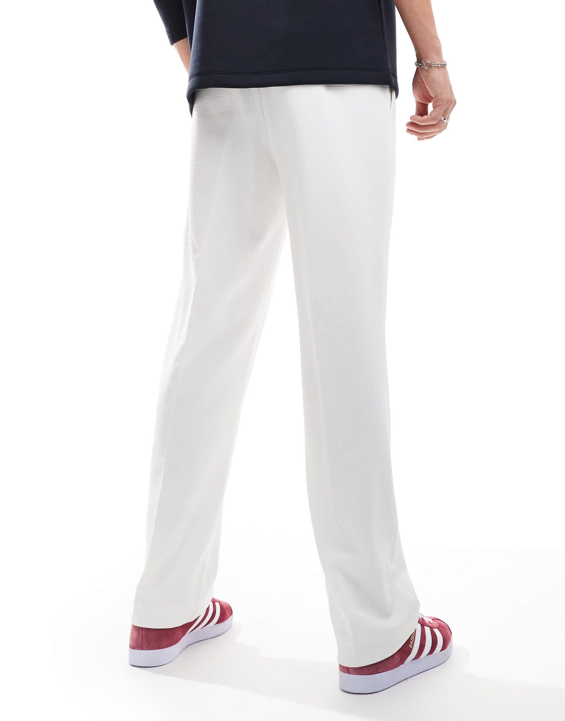 ASOS DESIGN pull on smart straight leg elasticated waist trousers in white texture