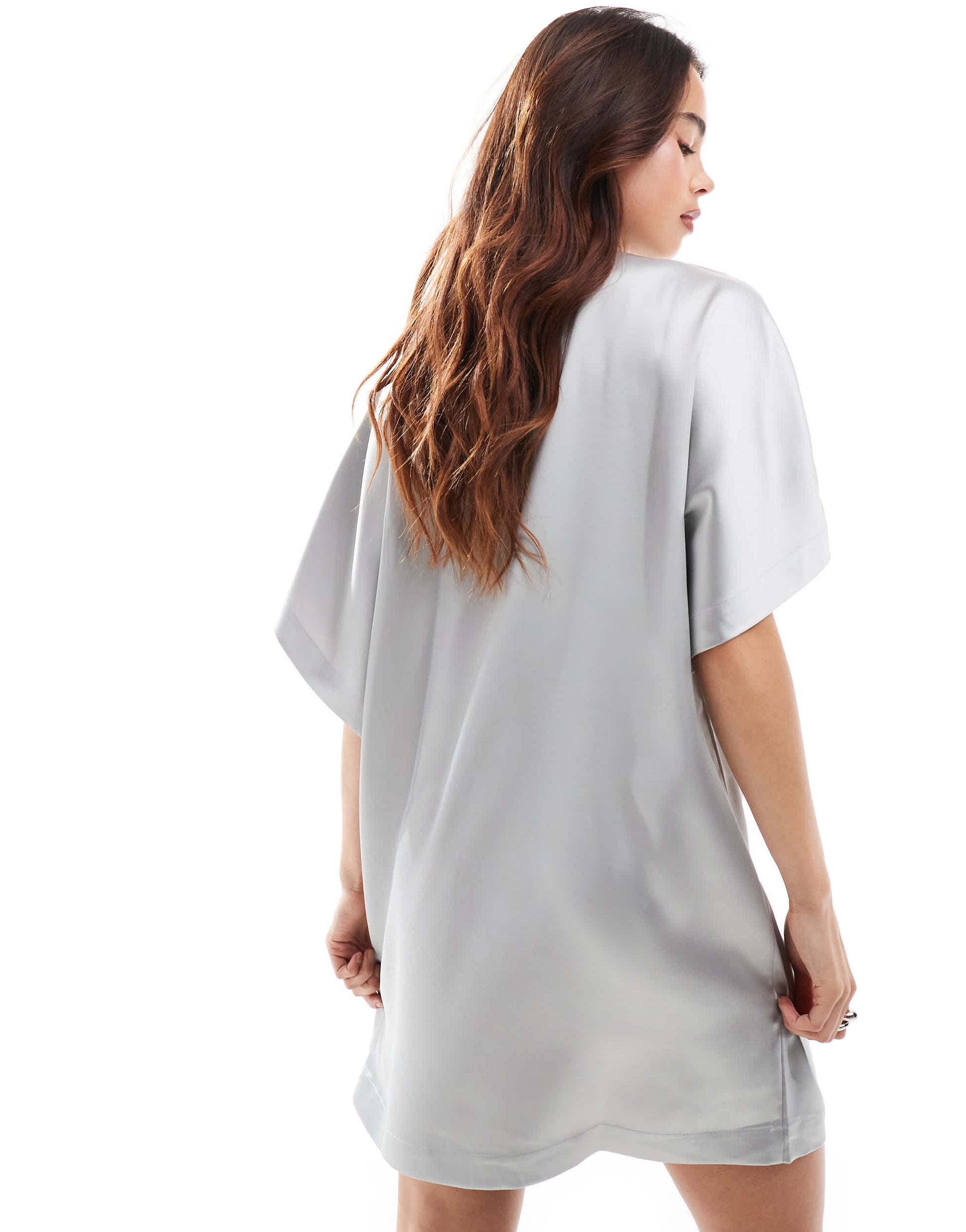 ASOS DESIGN satin oversized mini tshirt dress in silver