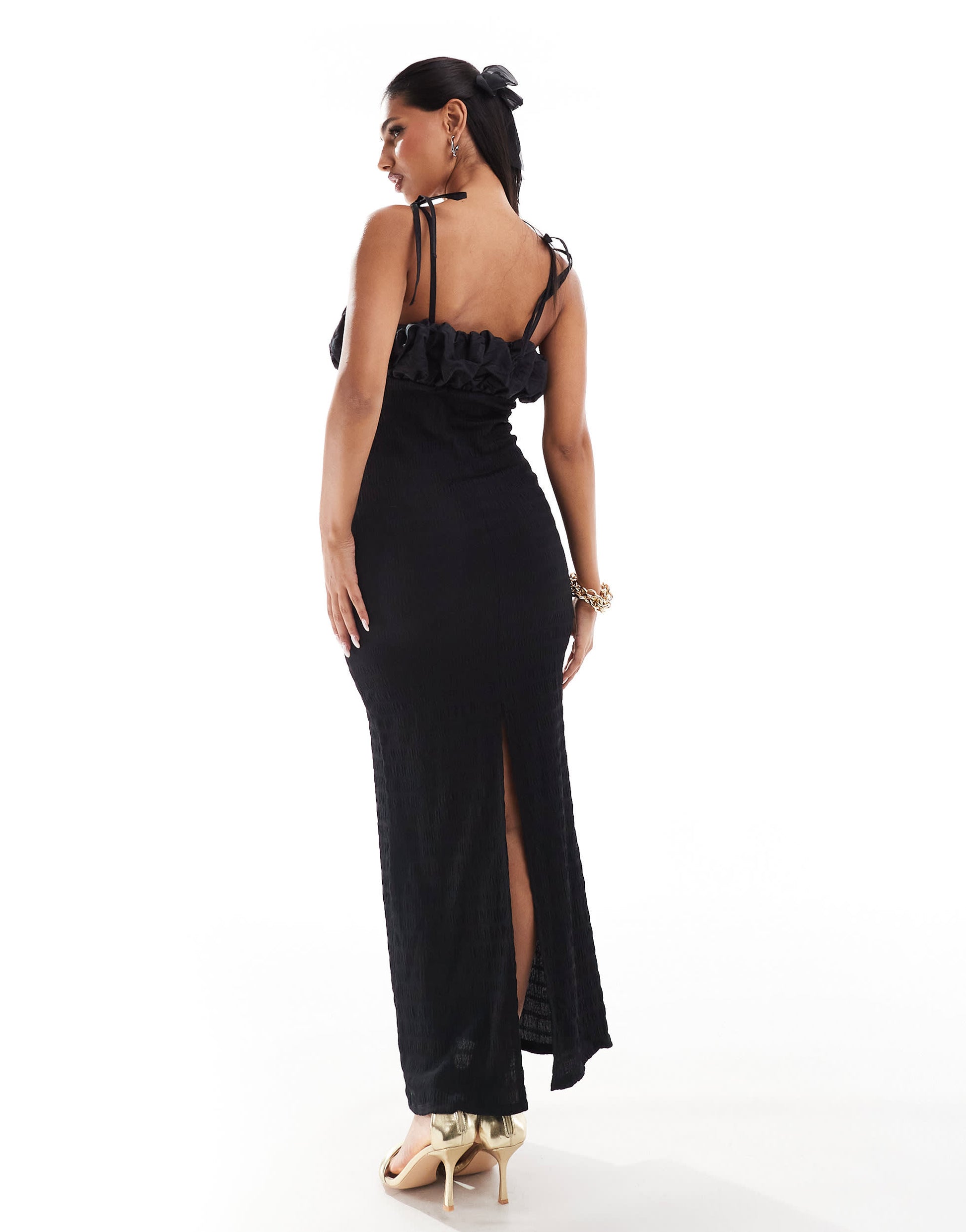 ASOS DESIGN scrunch boob with cut out textured midi dress in black