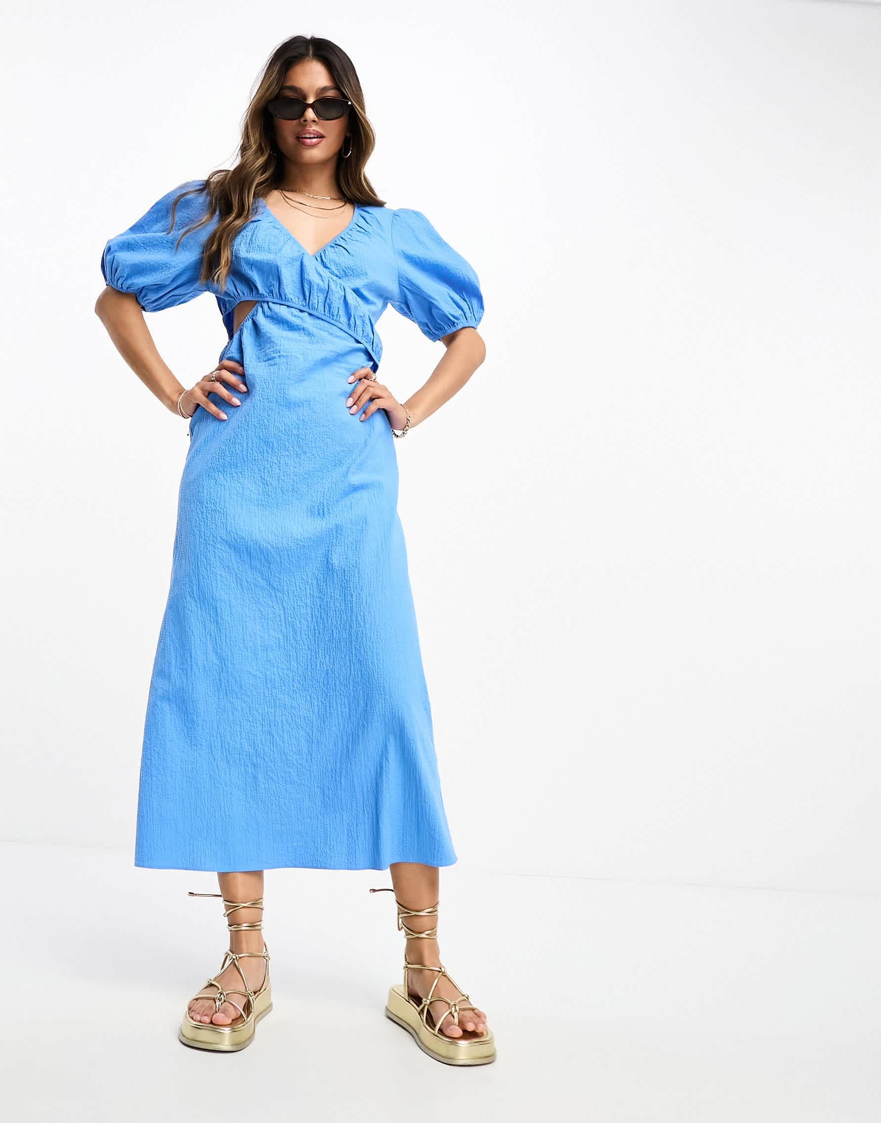 ASOS DESIGN seersucker wrap tea dress with cut out detail in pop blue