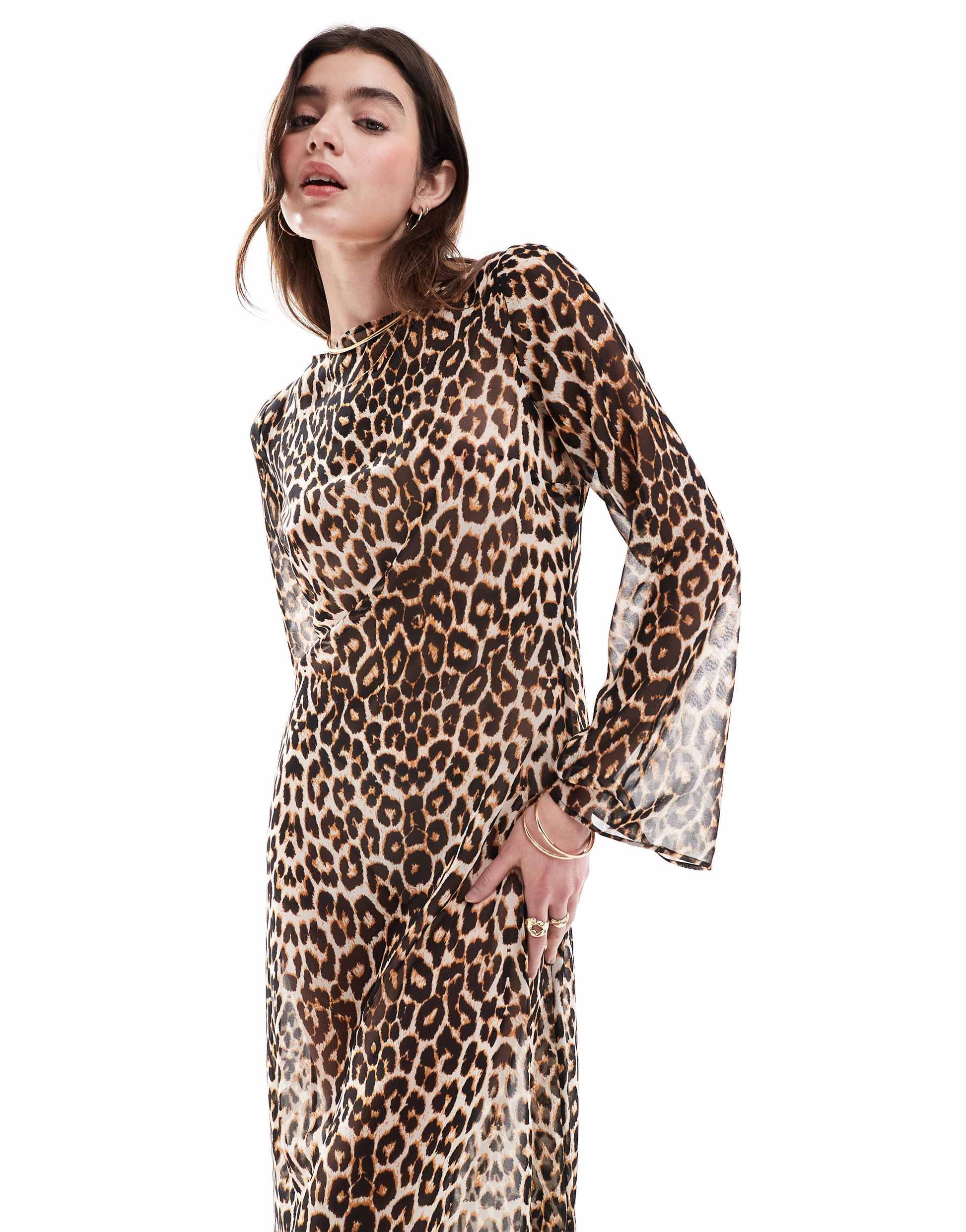 ASOS DESIGN sheer chiffon low back maxi dress in leopard print