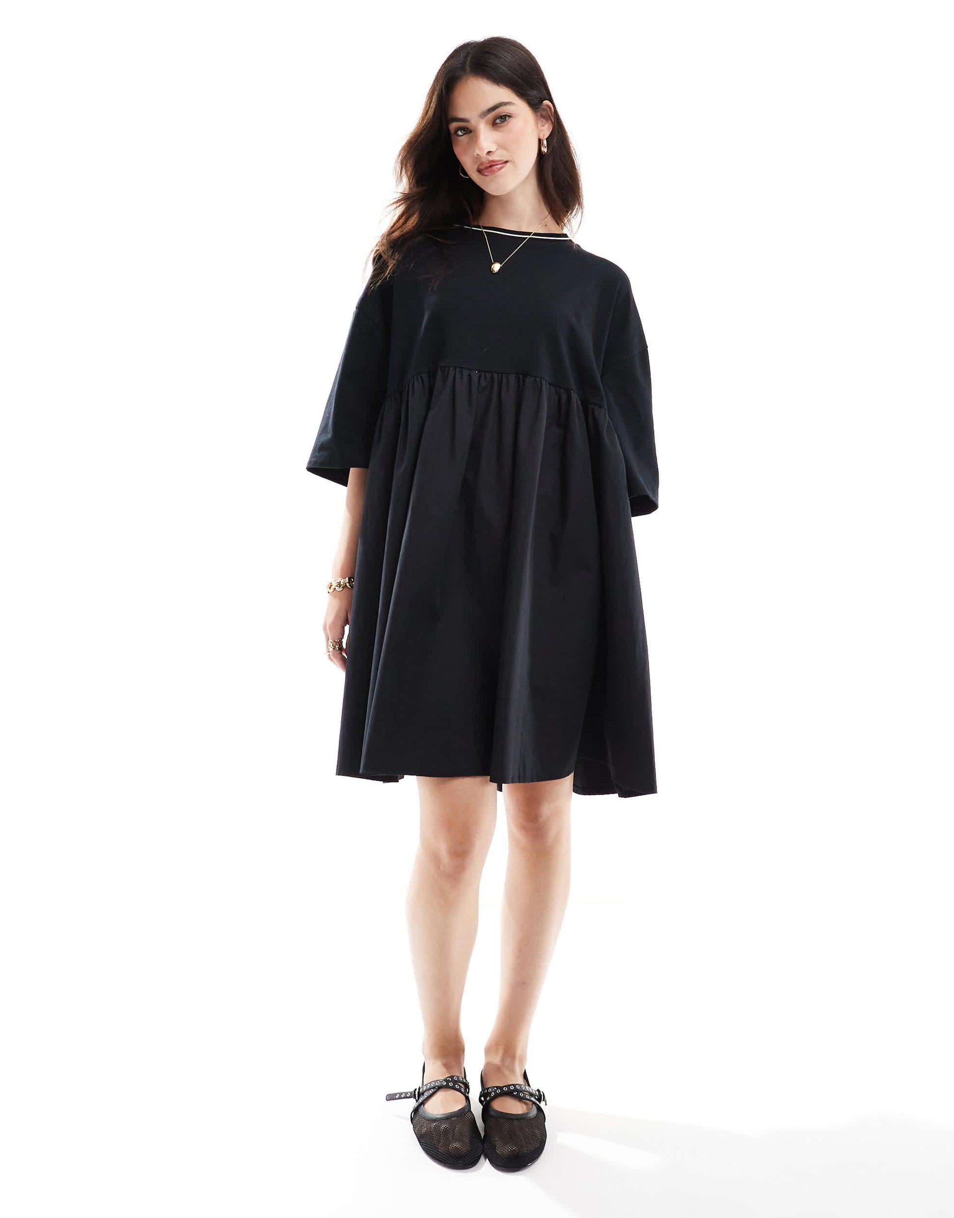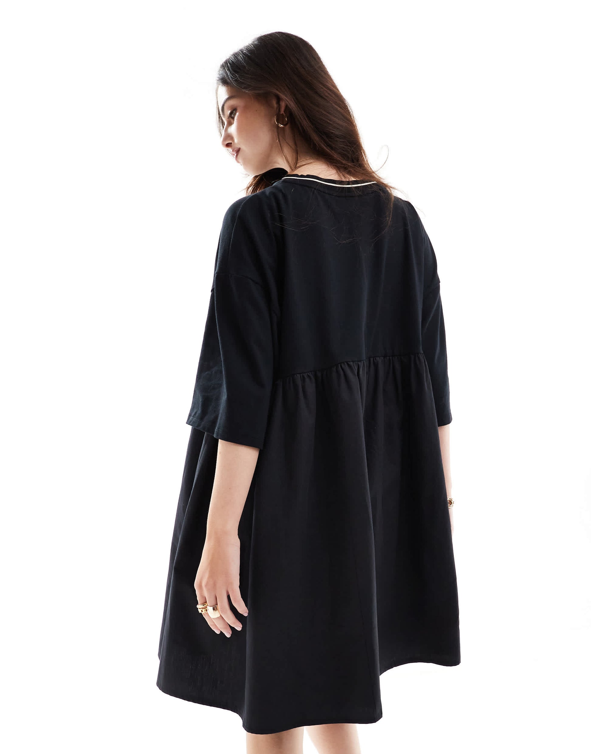 ASOS DESIGN short sleeve poplin mix mini dress with contrast neckline in black