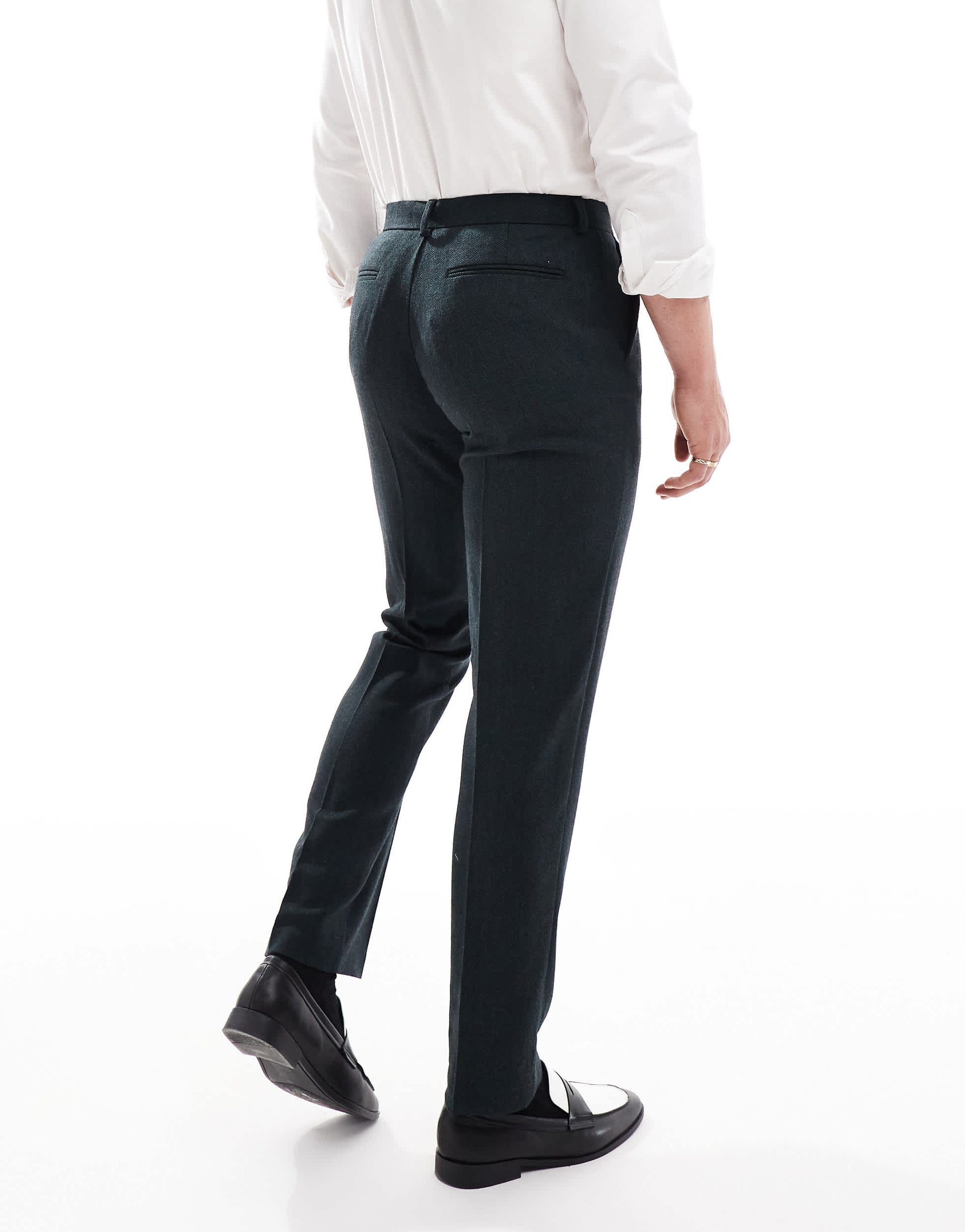 ASOS DESIGN slim fit wool mix suit trouser in herringbone in dark green