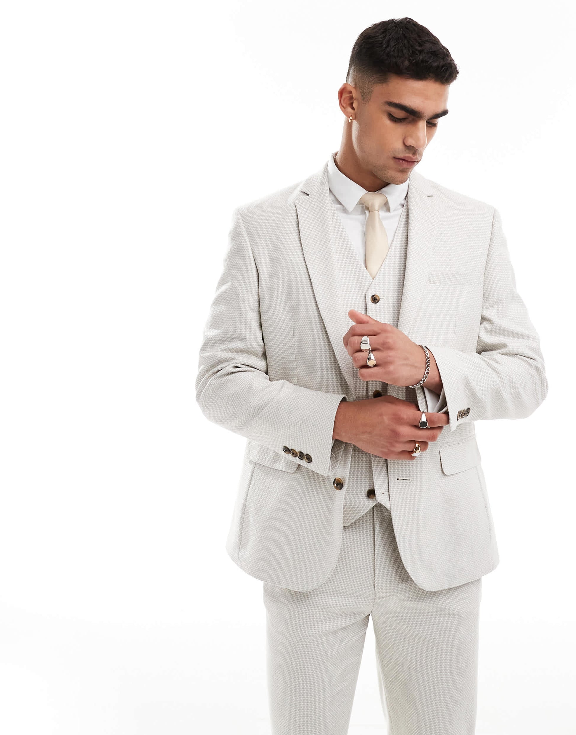 ASOS DESIGN slim suit jacket in pale grey birdseye texture