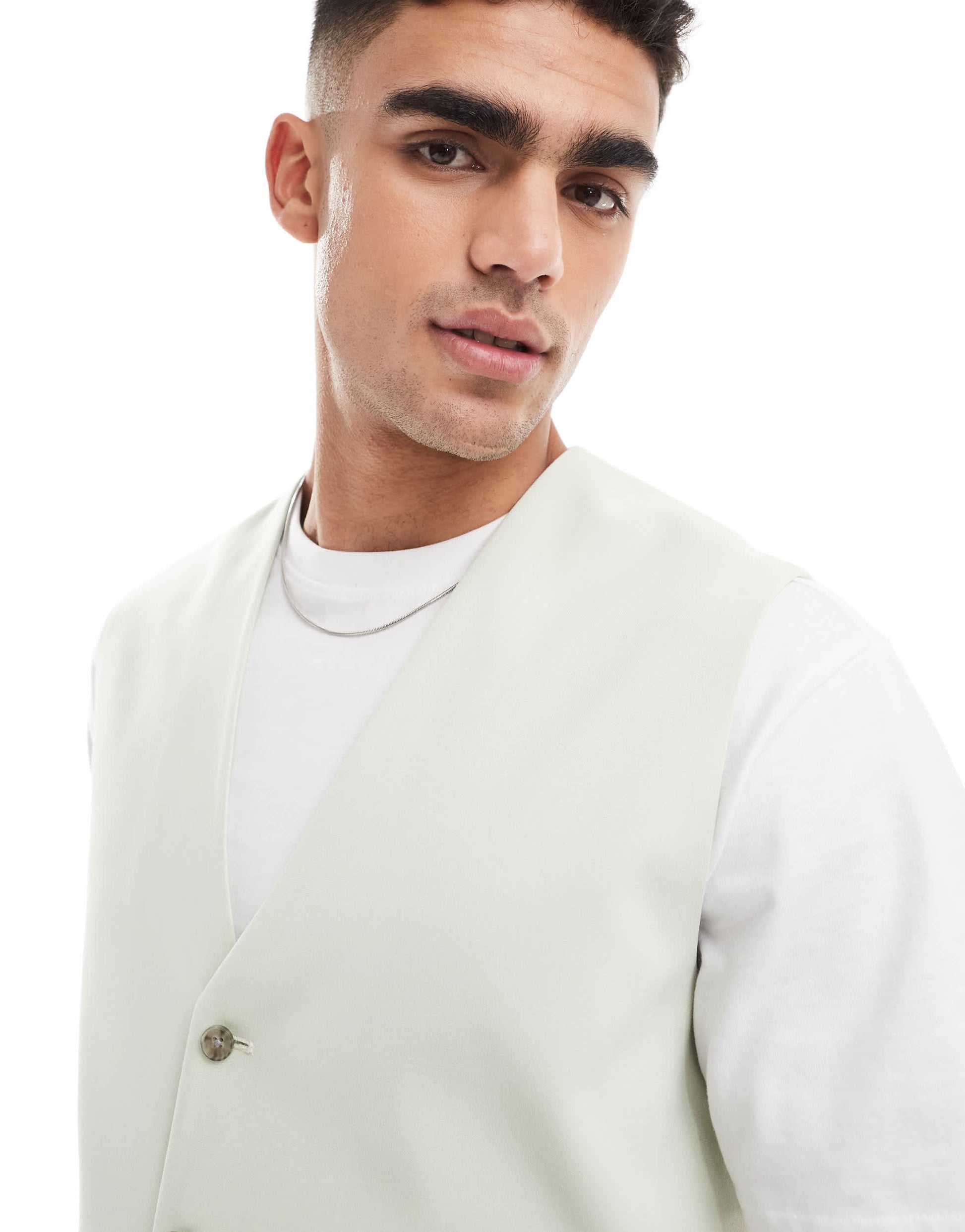 ASOS DESIGN smart co-ord boxy waistcoat in light sage green