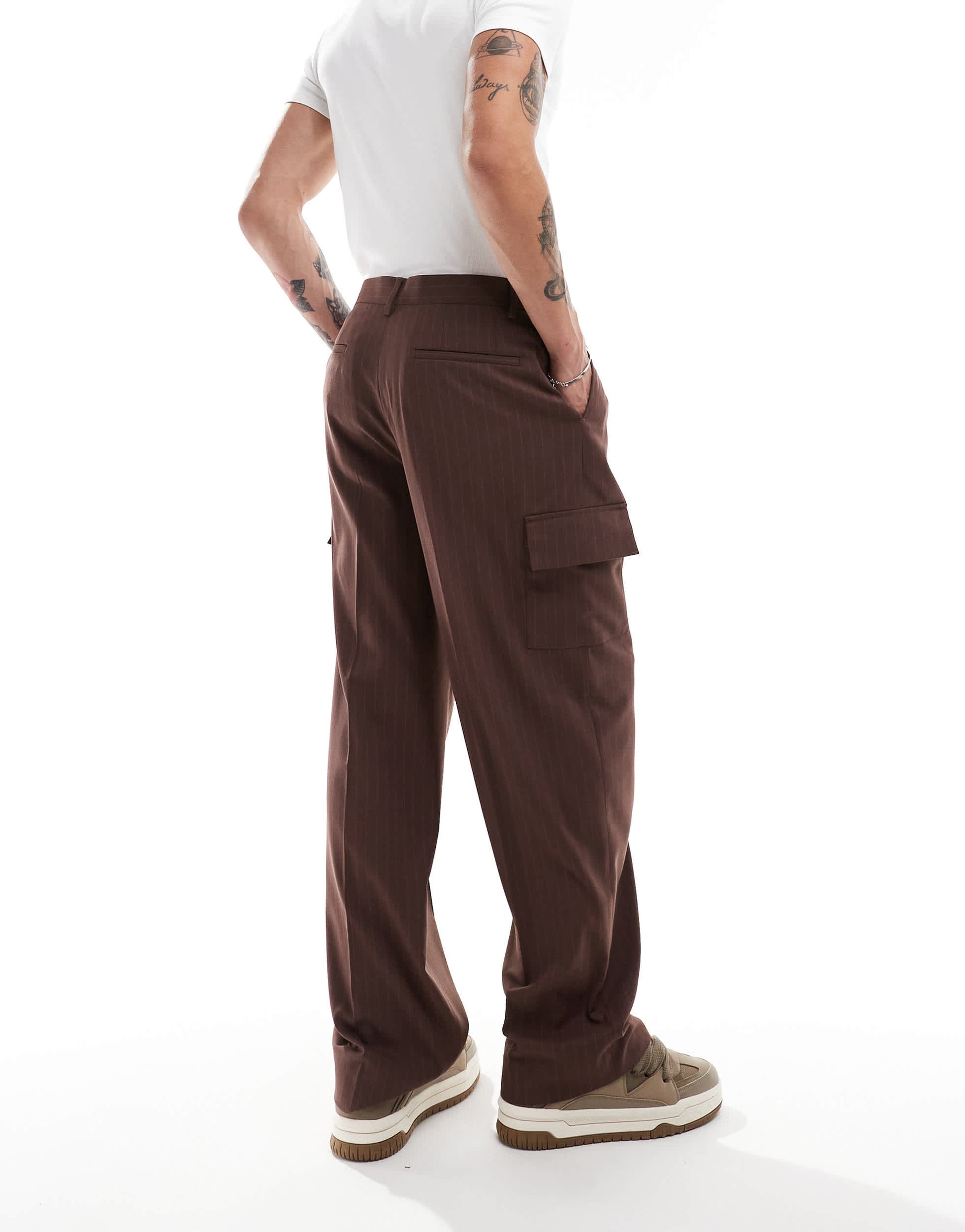 ASOS DESIGN smart co-ord pinstripe wide leg cargo trouser in brown