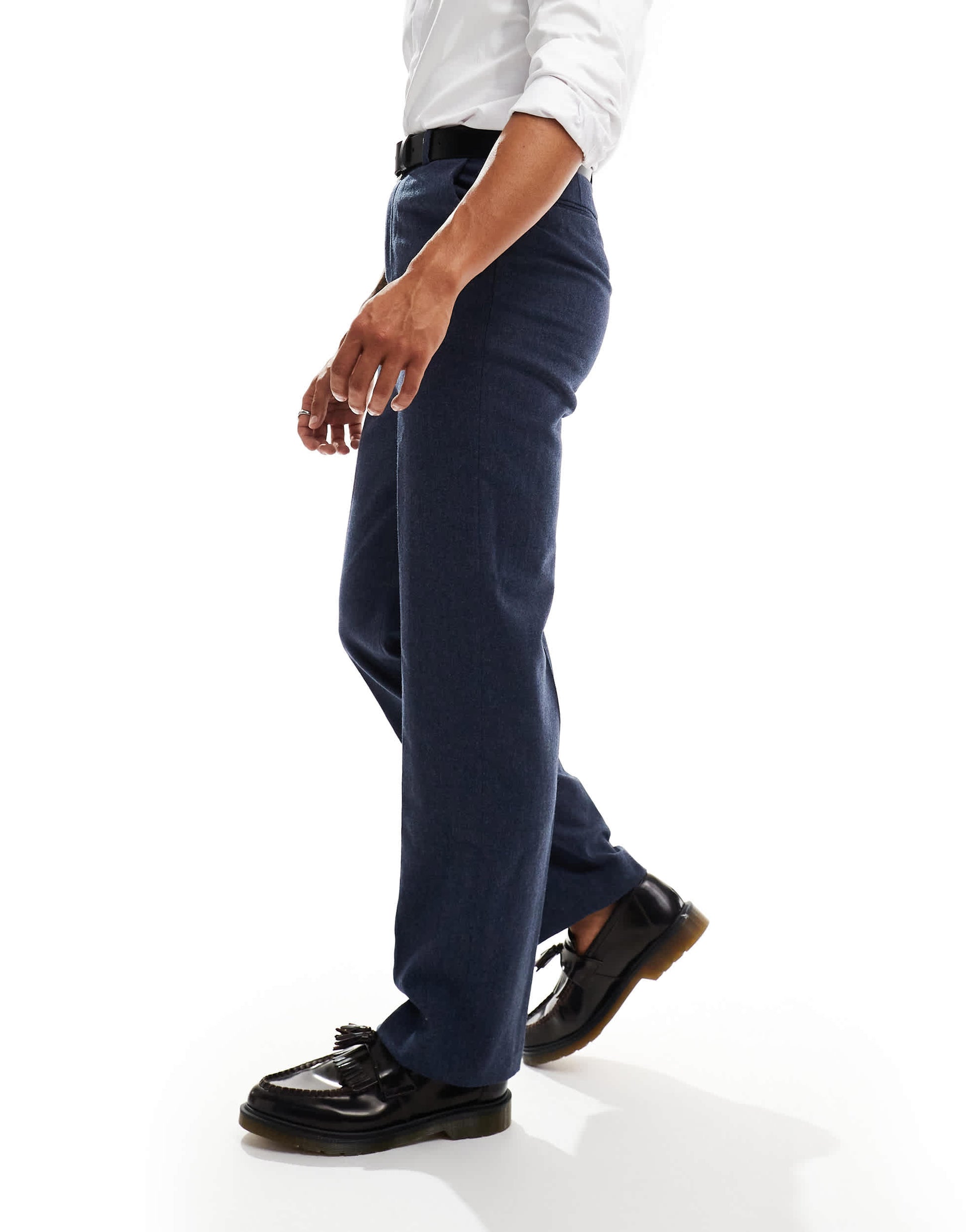 ASOS DESIGN smart high waist straight leg wool mix trousers in navy