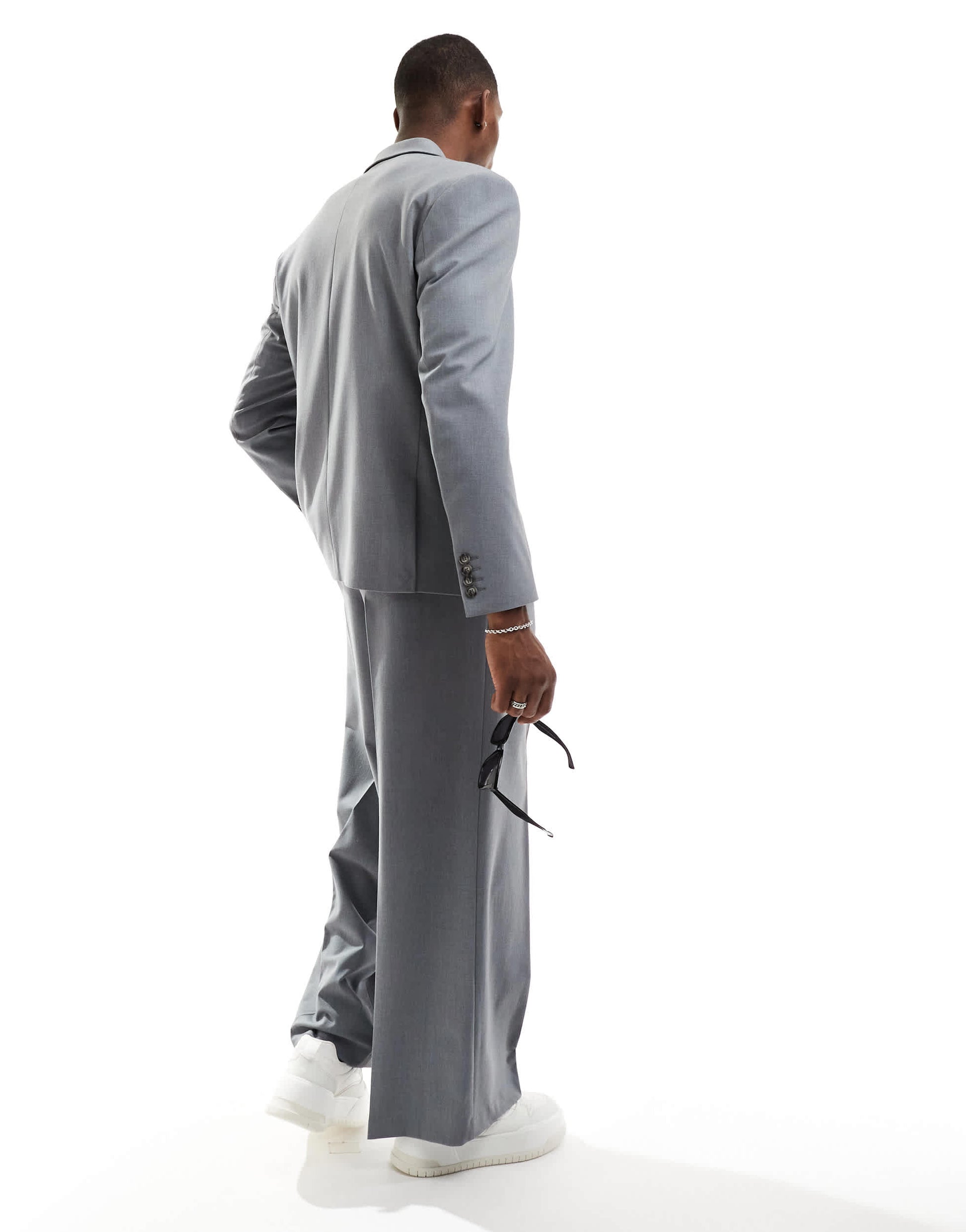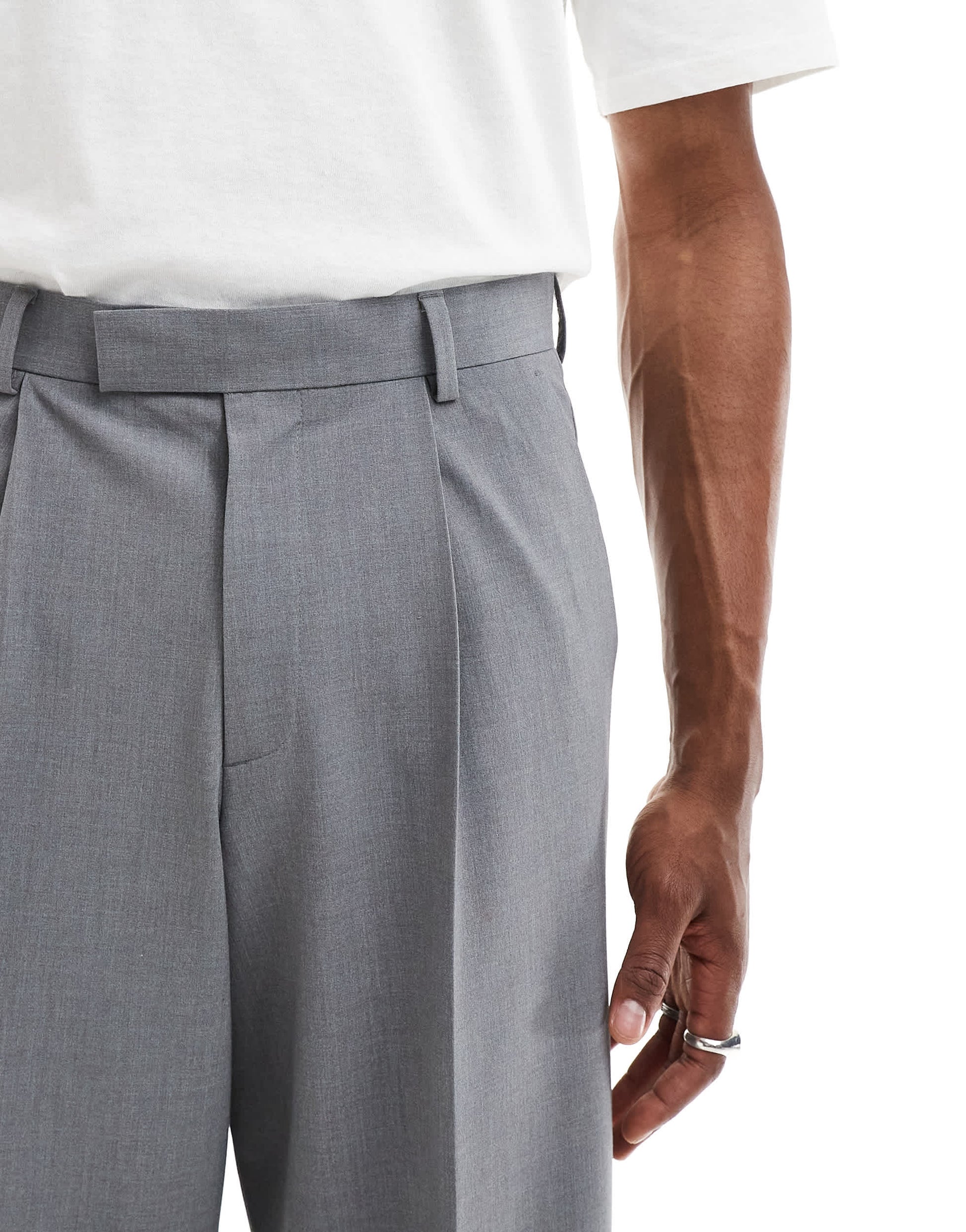 ASOS DESIGN smart pleat front loose leg suit trouser in grey