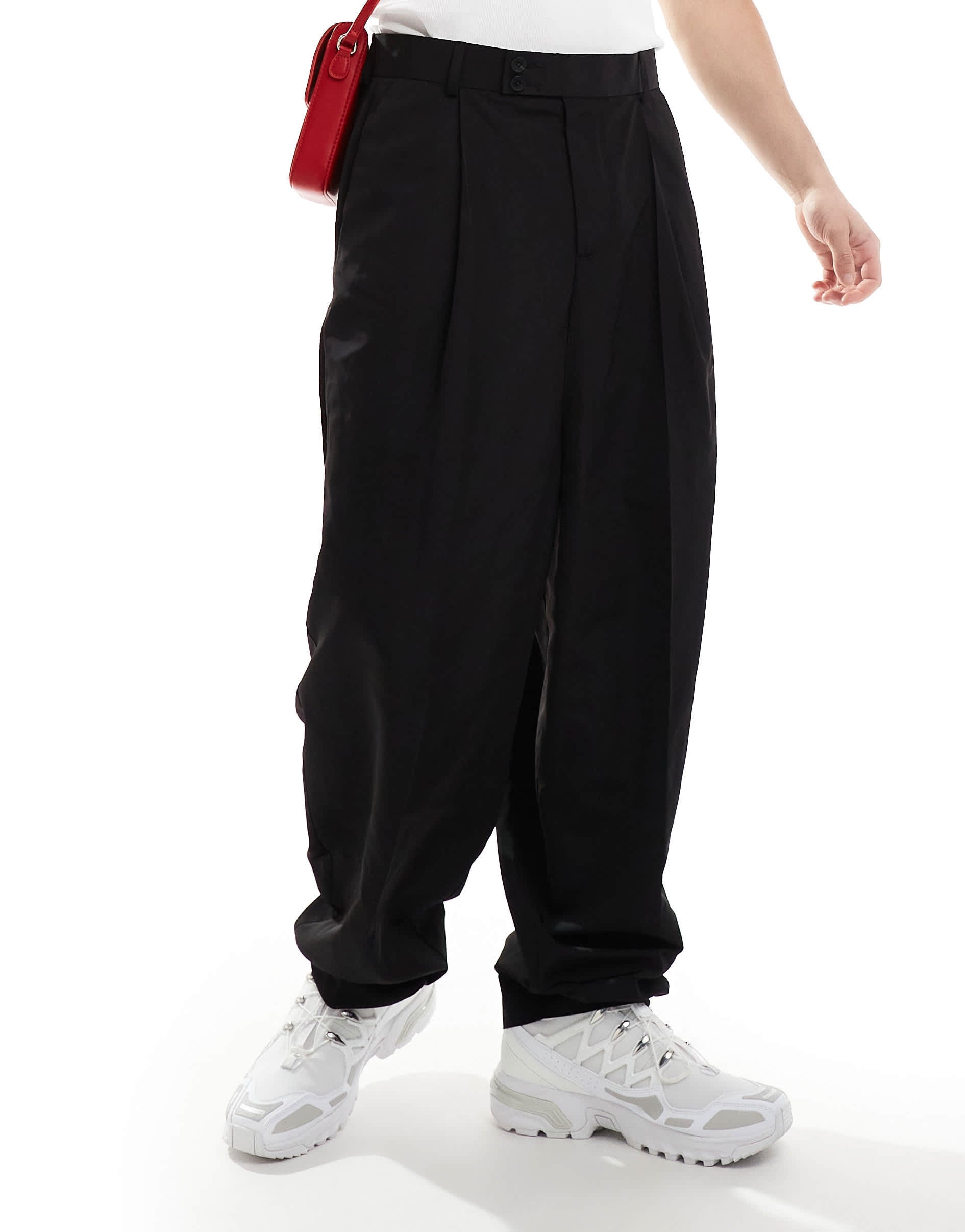 ASOS DESIGN smart relaxed barrel leg trousers in black with half elasticated waist