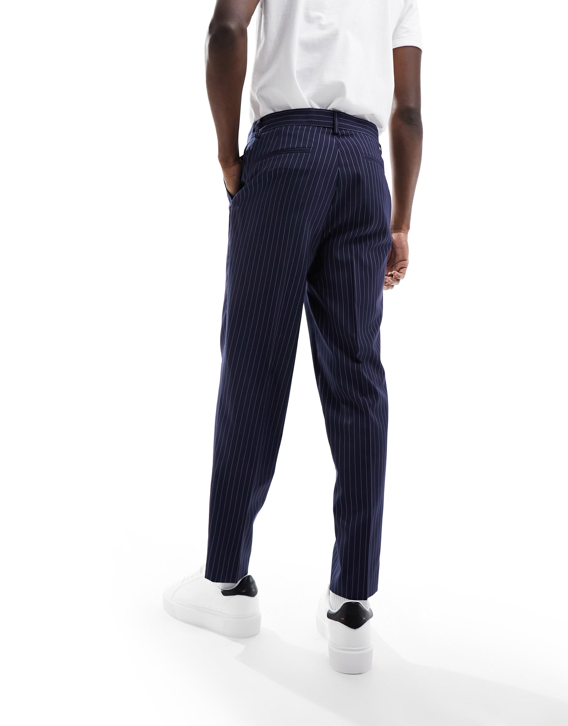 ASOS DESIGN smart tapered pinstripe trousers in navy