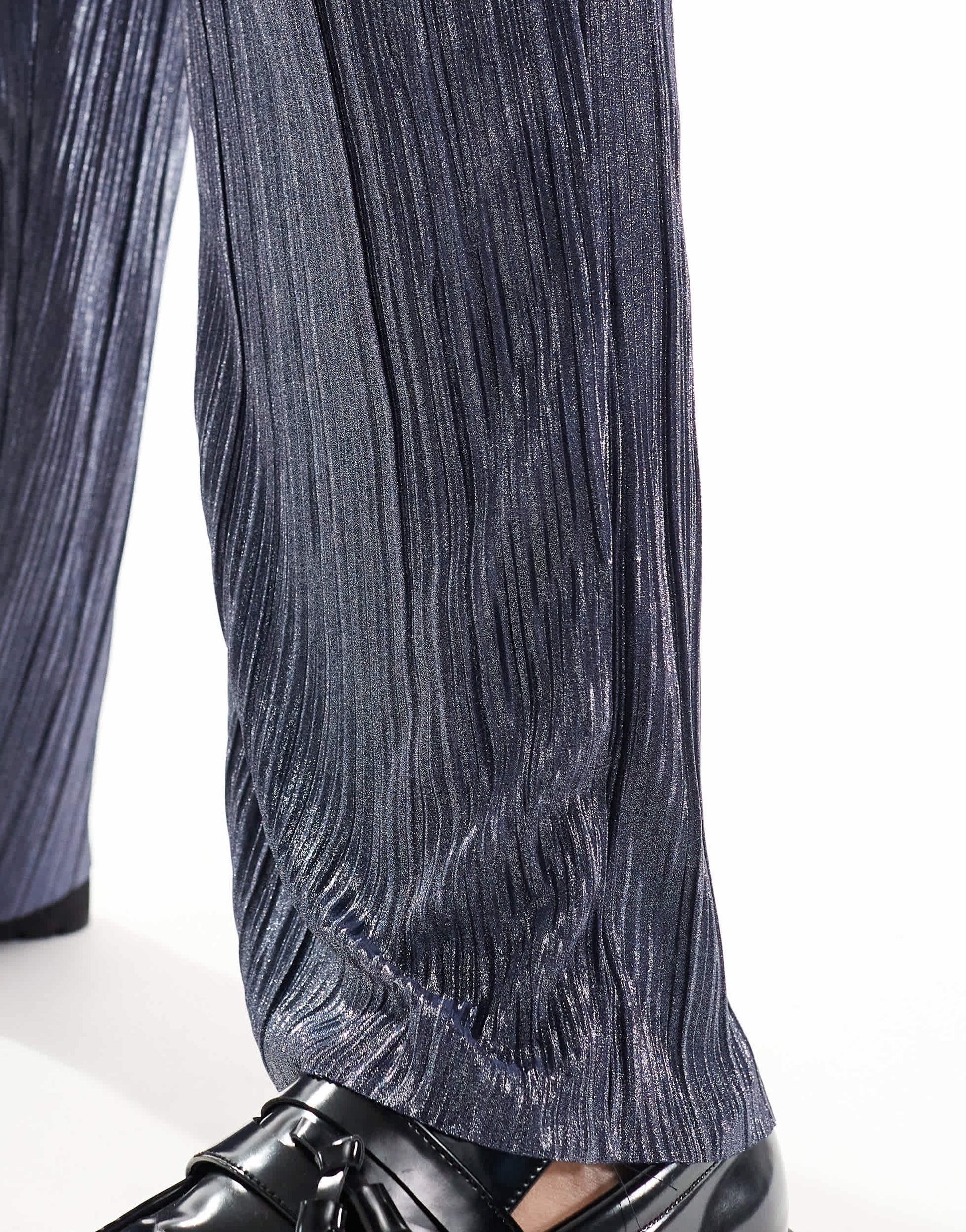 ASOS DESIGN smart tapered trouser in blue metallic plisse