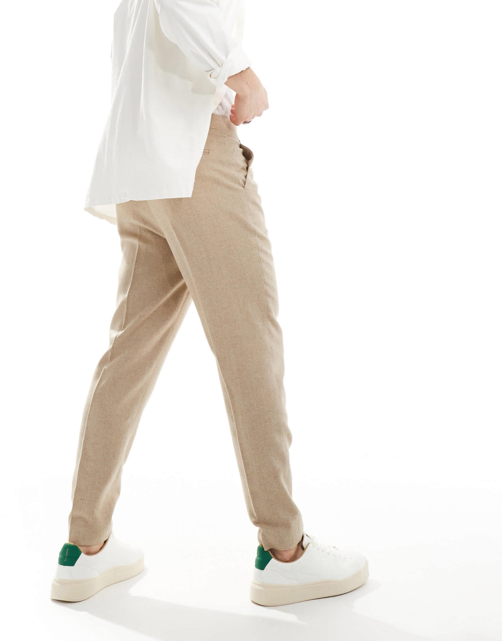 ASOS DESIGN smart wool mix tapered trousers in stone