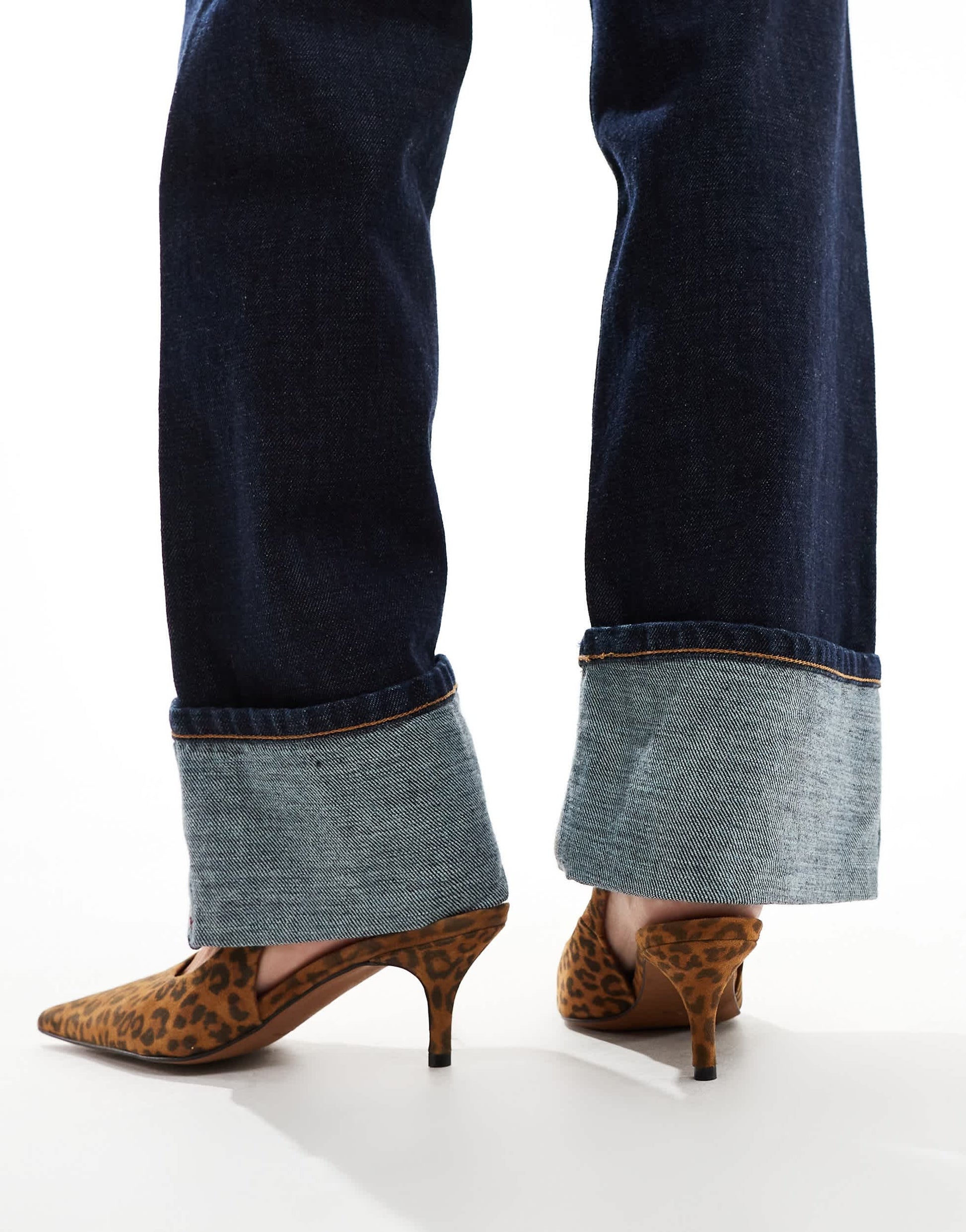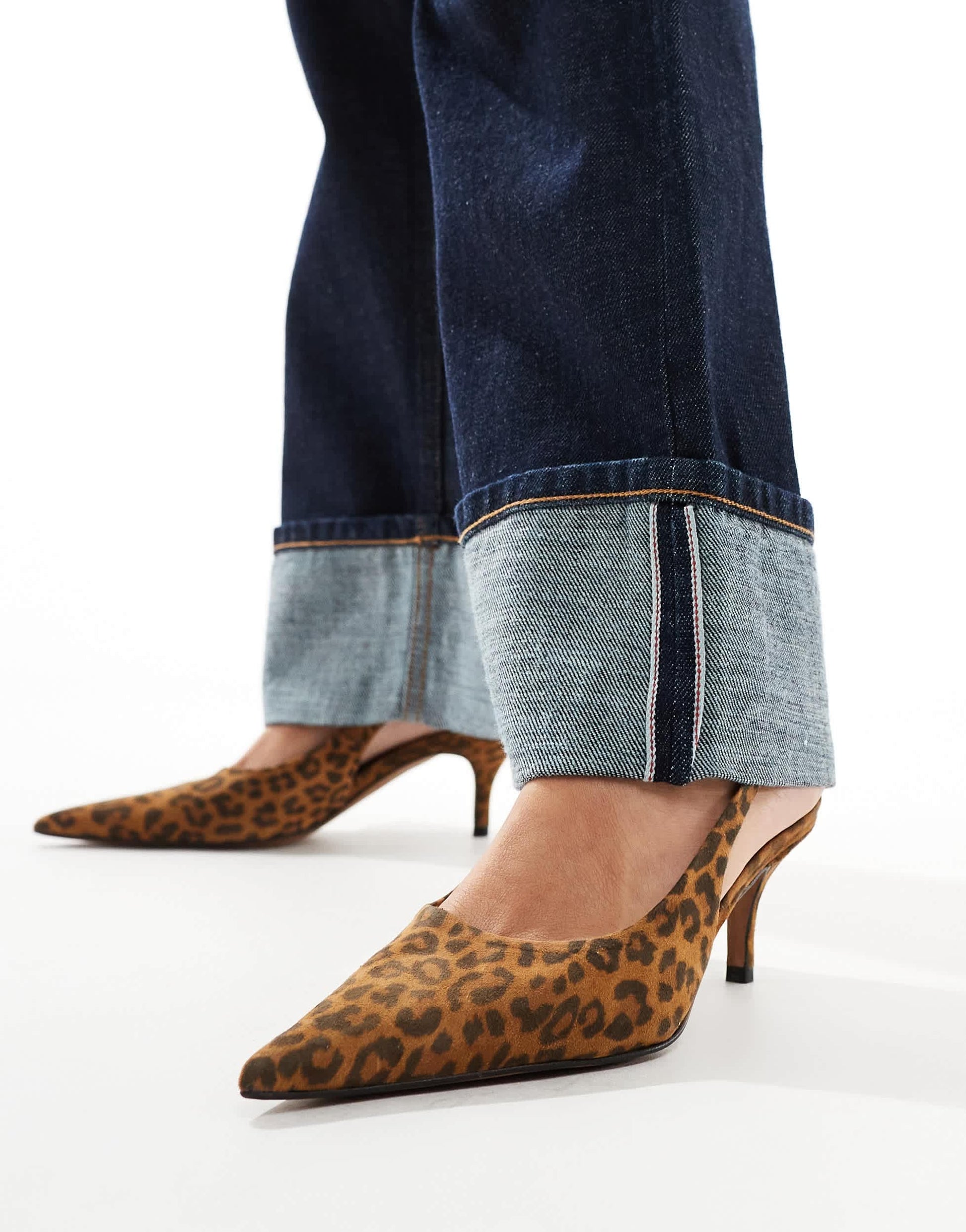 ASOS DESIGN Solo premium leather slingback mid heeled shoes in leopard