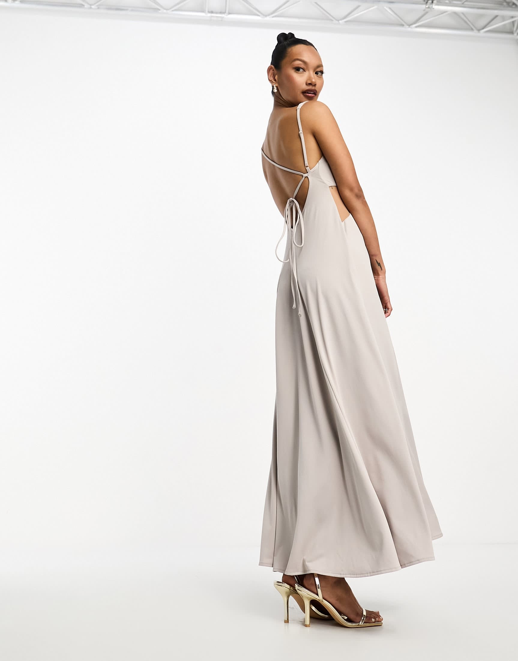 ASOS DESIGN strappy mesh insert cut out maxi dress in stone