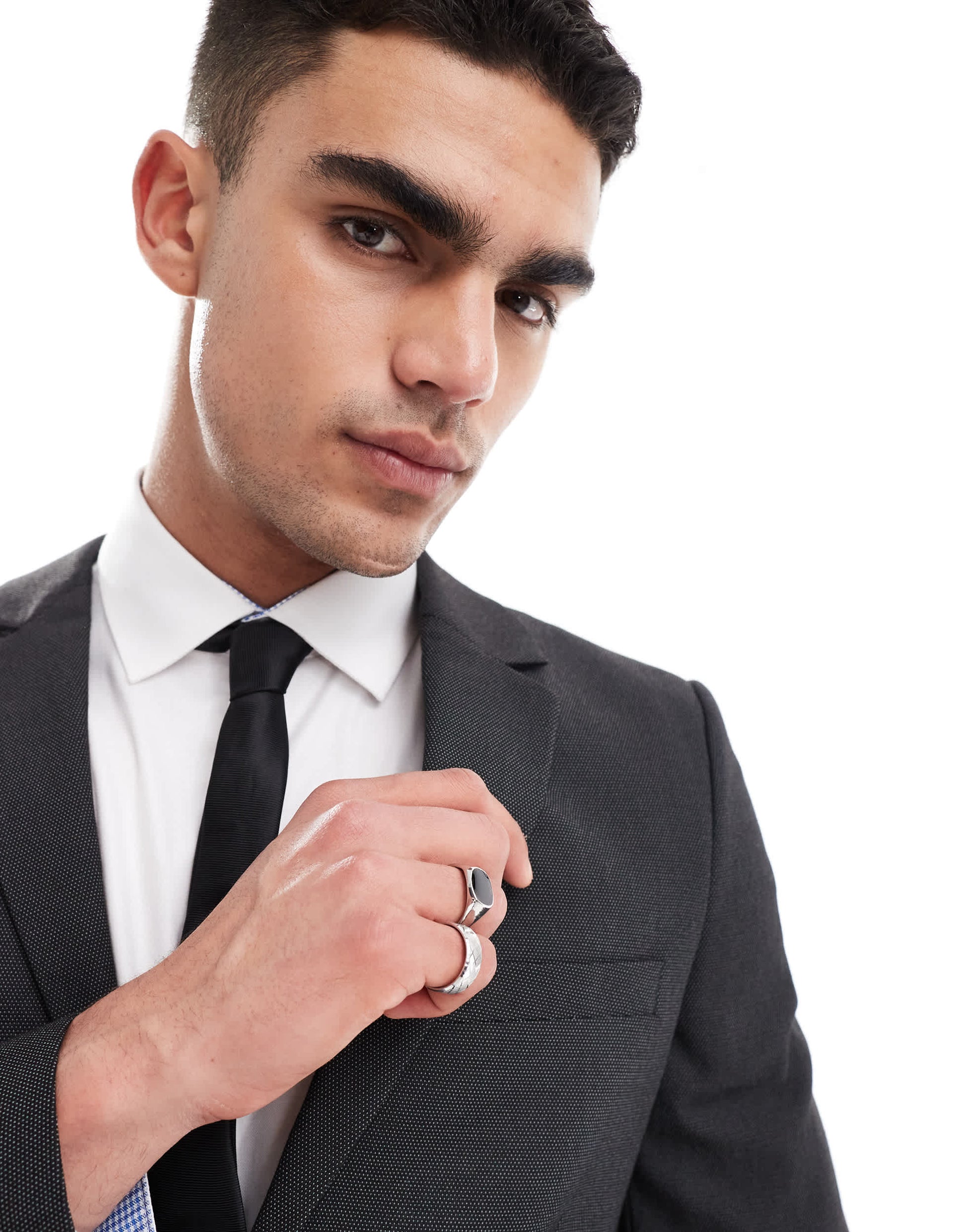ASOS DESIGN super skinny suit jacket in black pindot