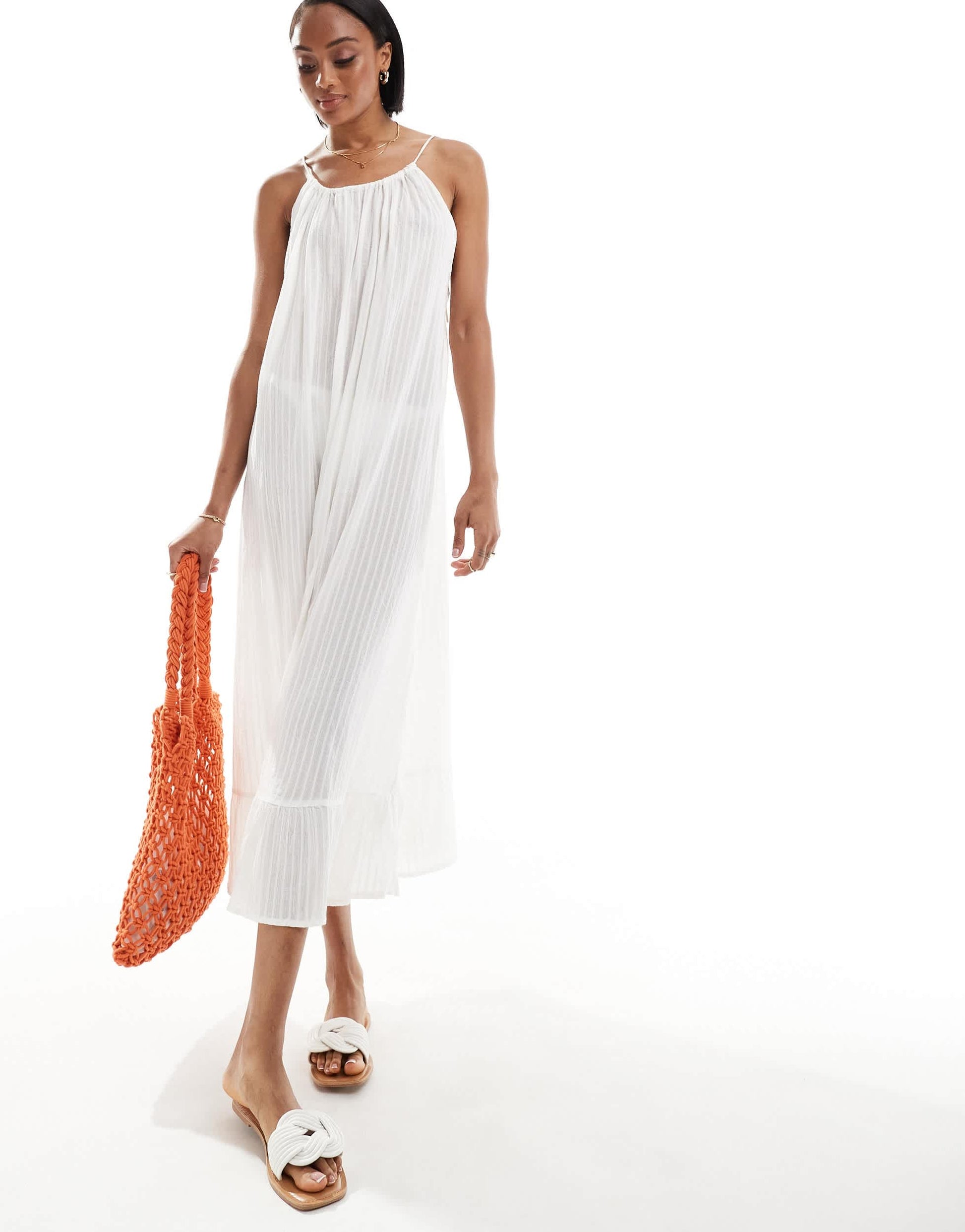 ASOS DESIGN Tall textured dobby drop hem maxi beach dress in ivory