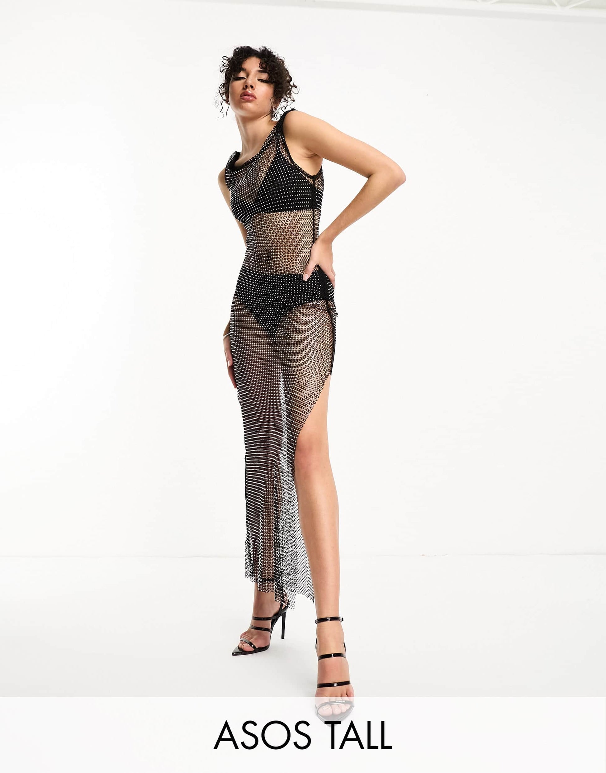ASOS DESIGN Tall twist strap hotfix midi dress in black