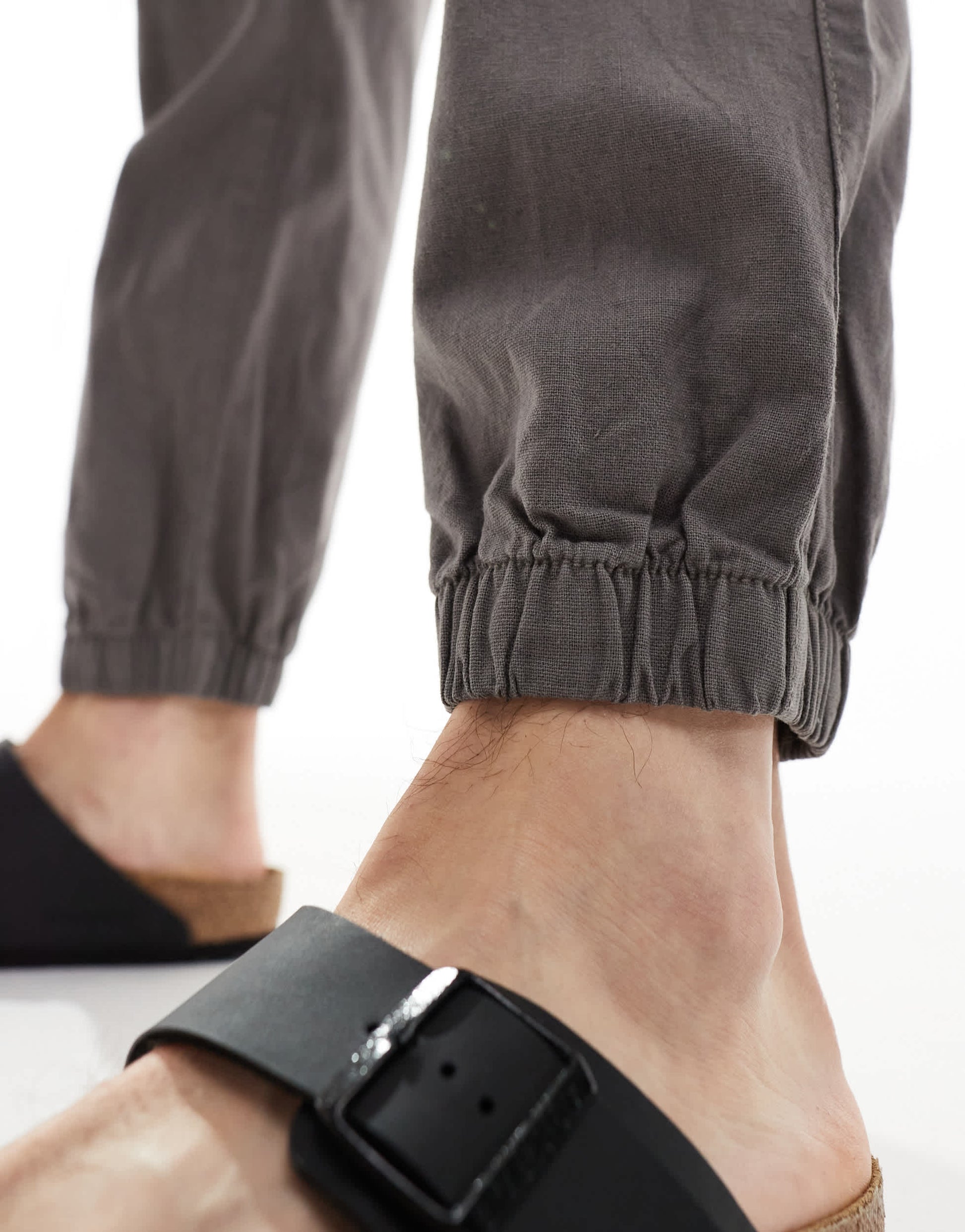 ASOS DESIGN tapered pull on linen trouser in washed grey
