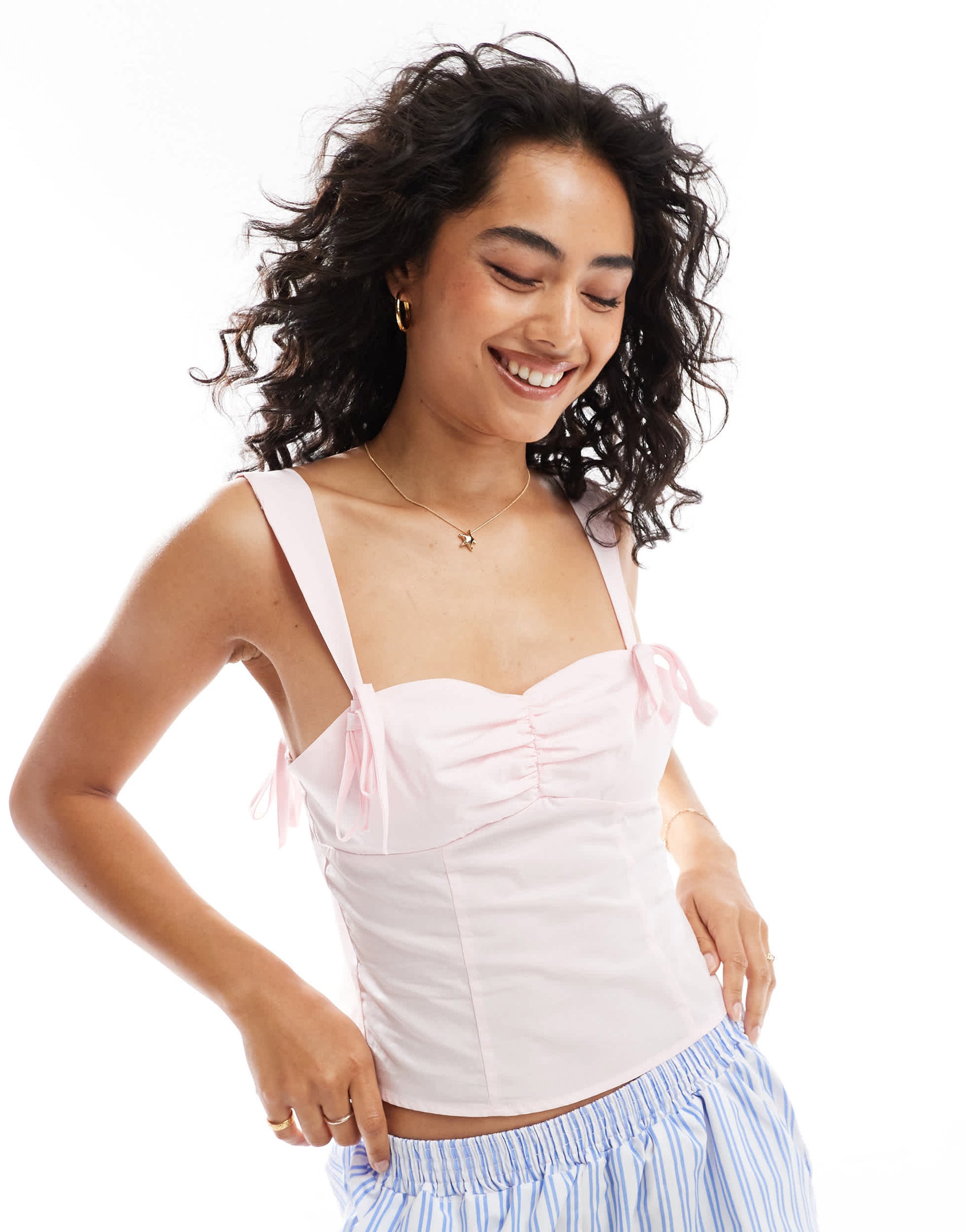 ASOS DESIGN tie detail gathered bust cami in pink