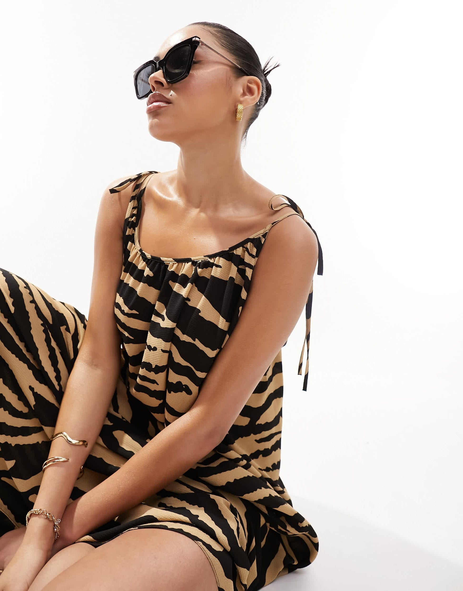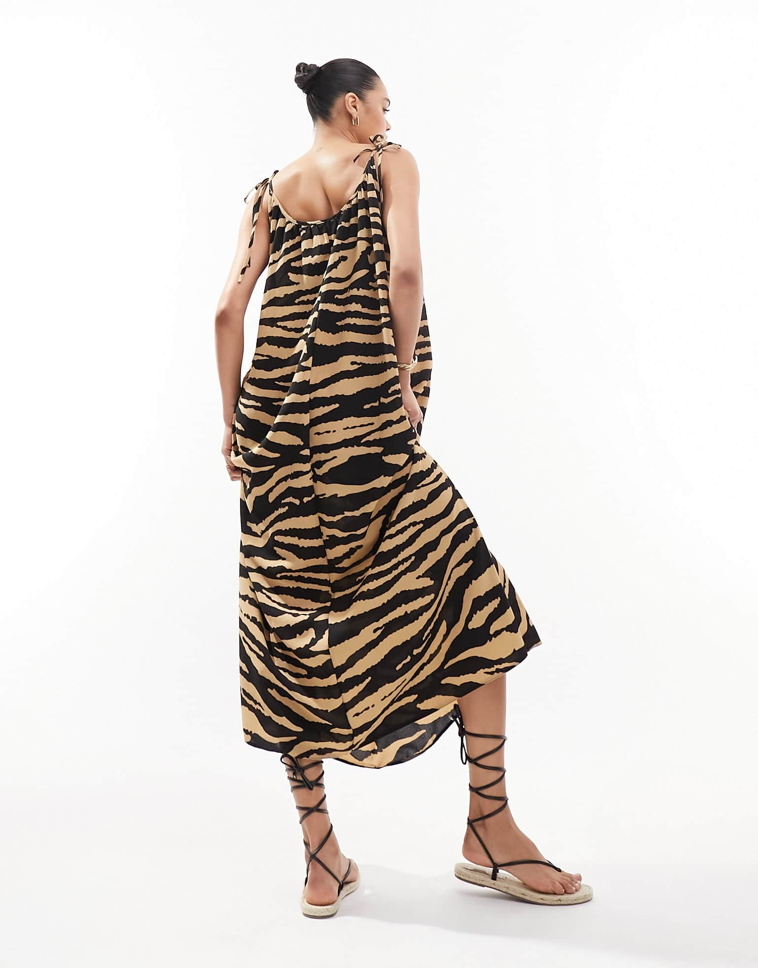 ASOS DESIGN tie strap detail trapeze maxi slip dress in animal print