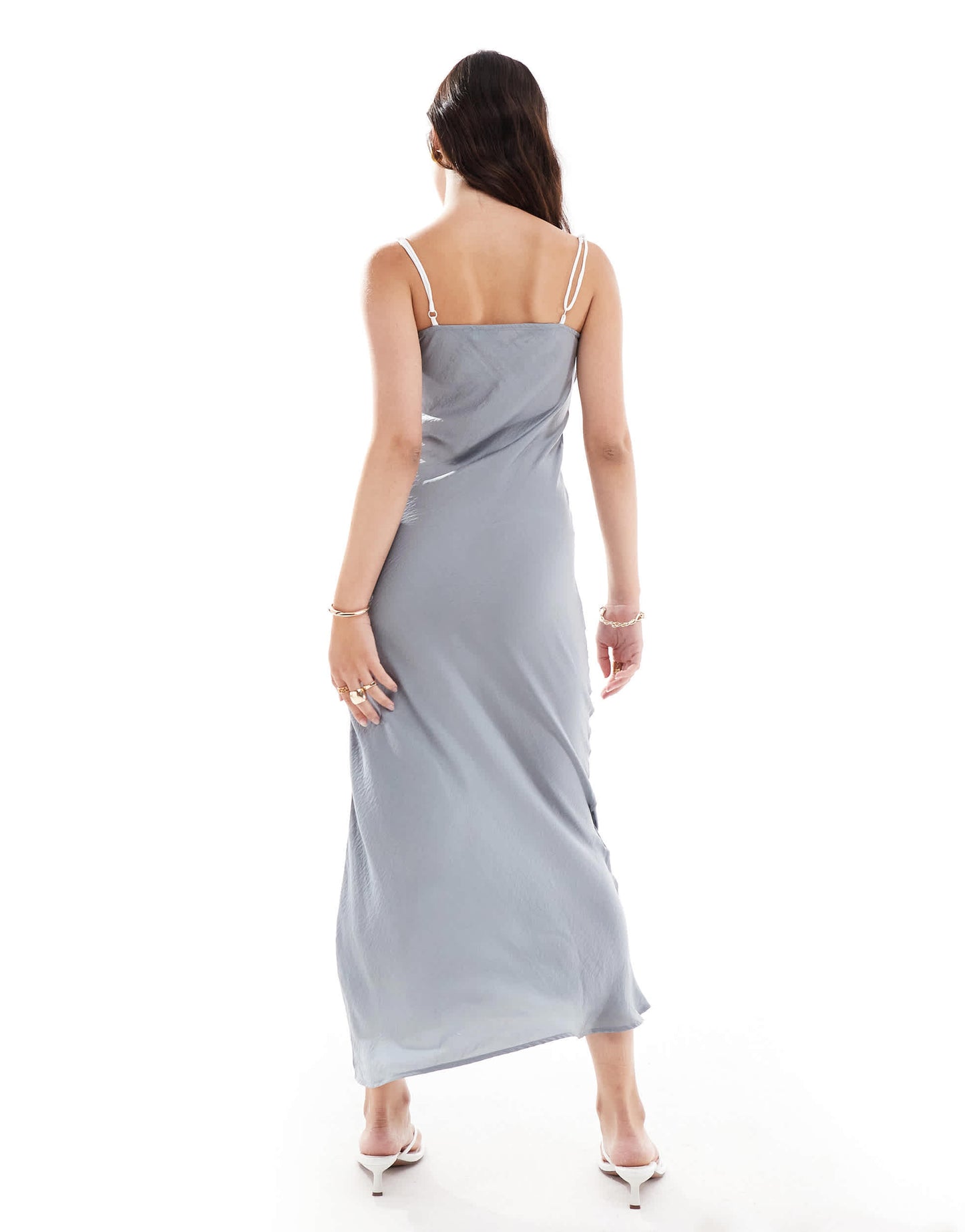ASOS DESIGN tie up cut out strappy satin midi dress in grey