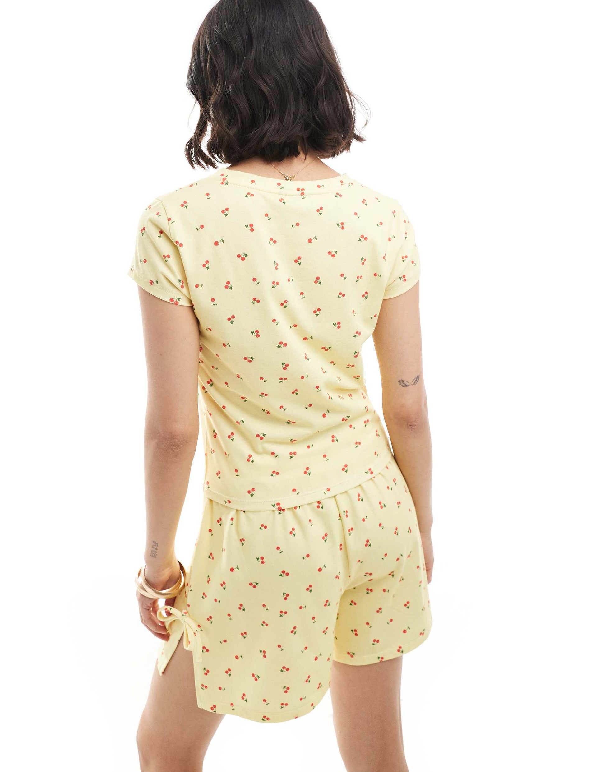 ASOS DESIGN v neck baby tee co-ord in buttermilk cherry print