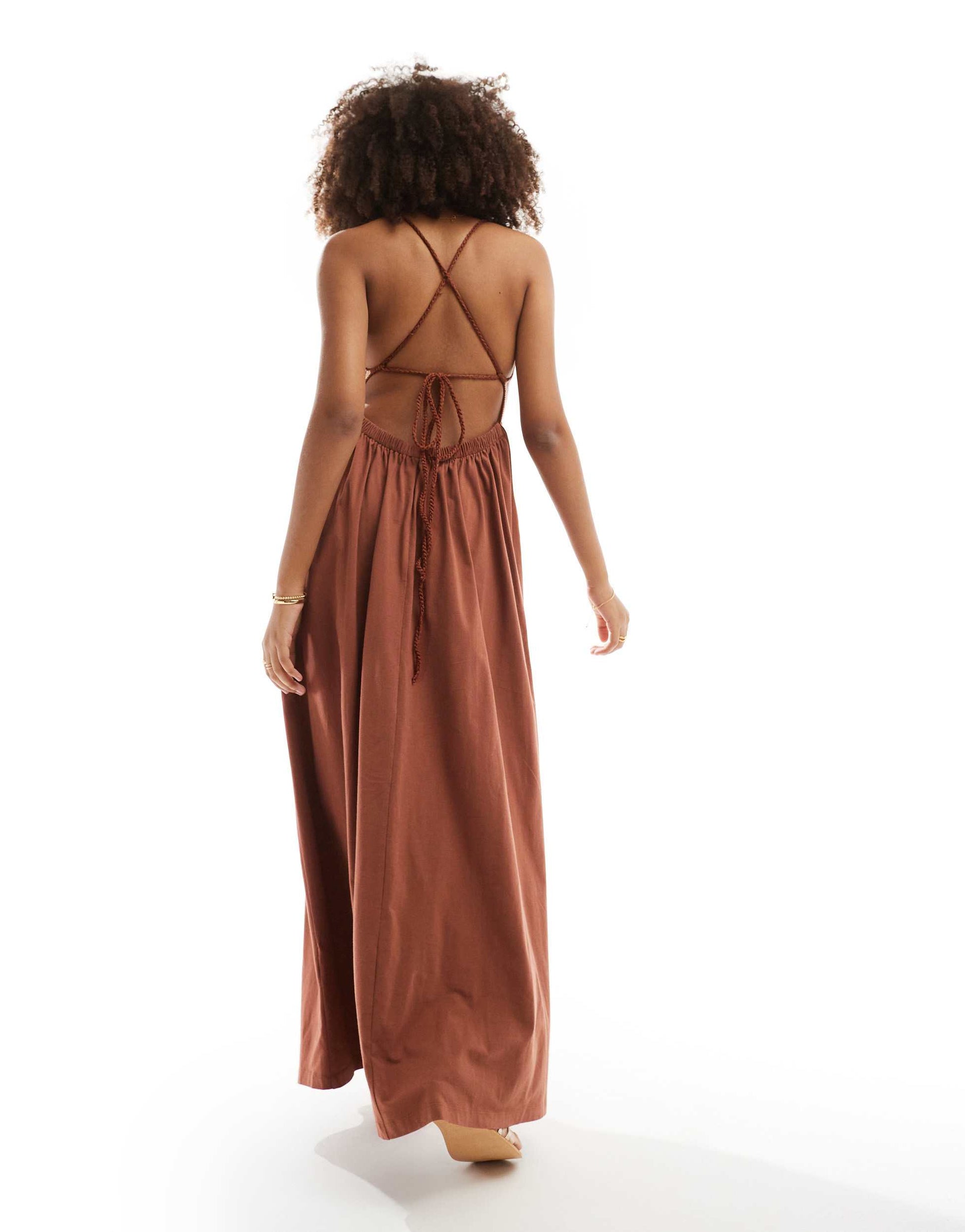 ASOS DESIGN v neck crochet bust maxi dress in rust