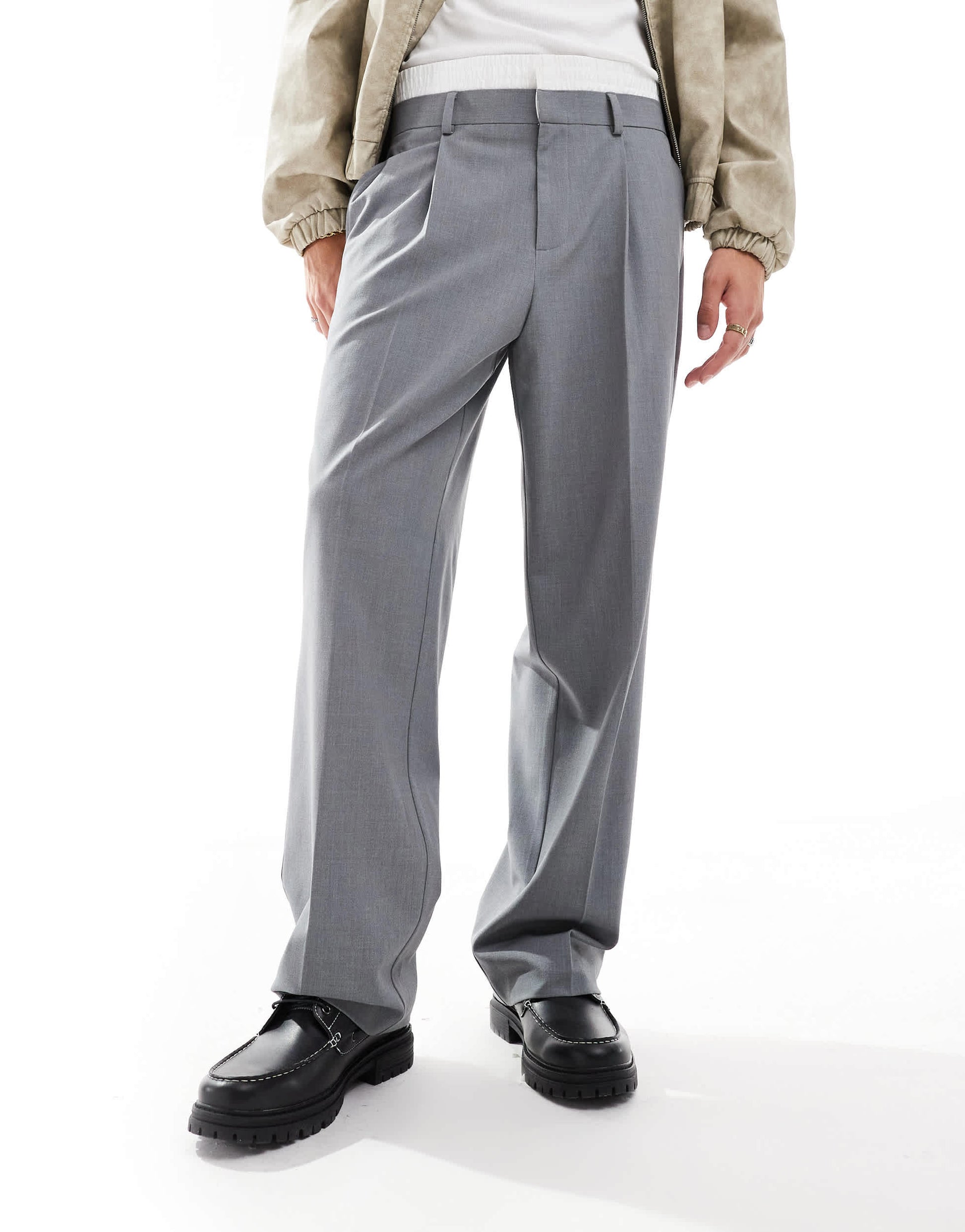 ASOS DESIGN wide leg smart trouser with a white contrast waistband in grey